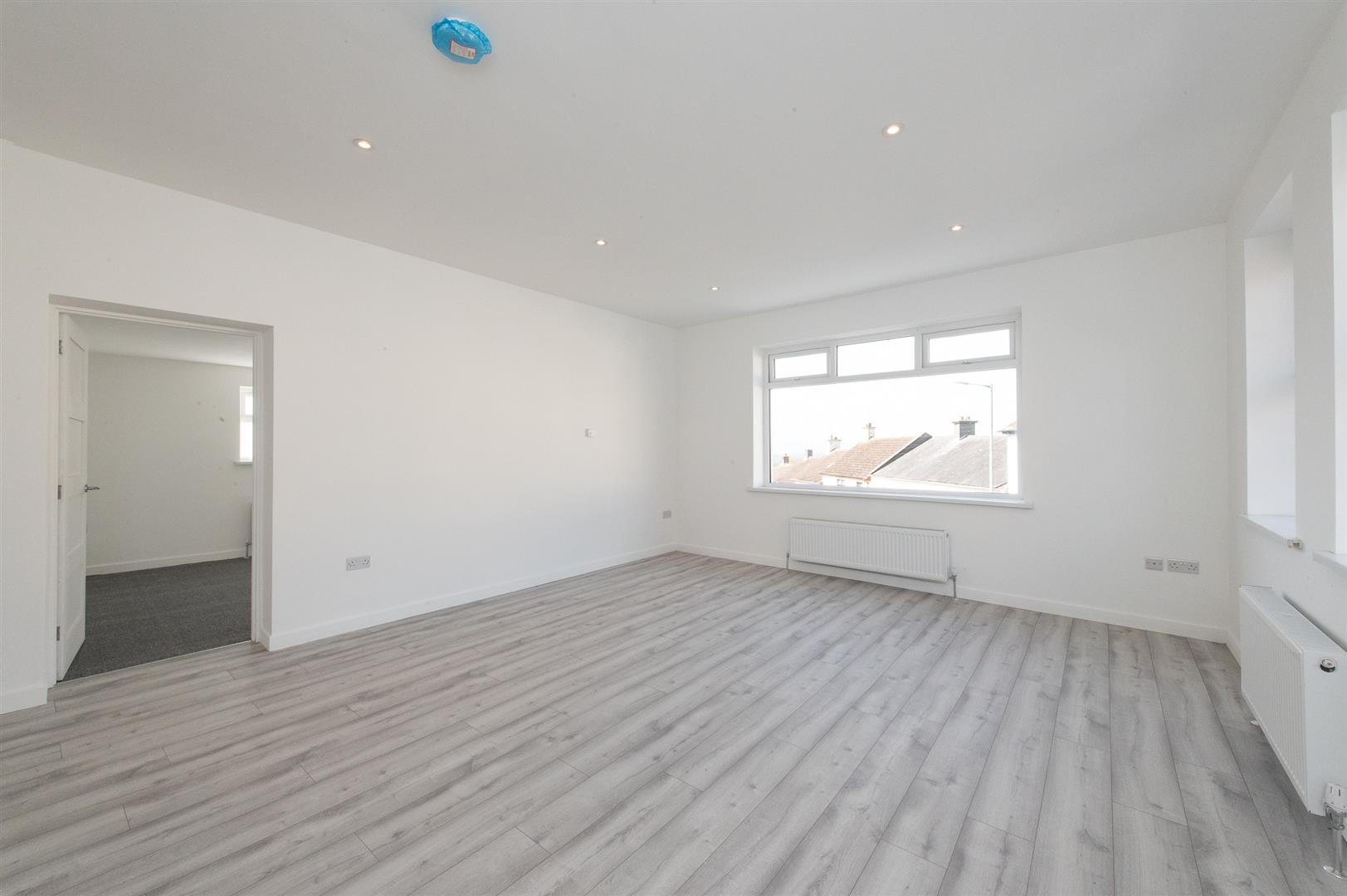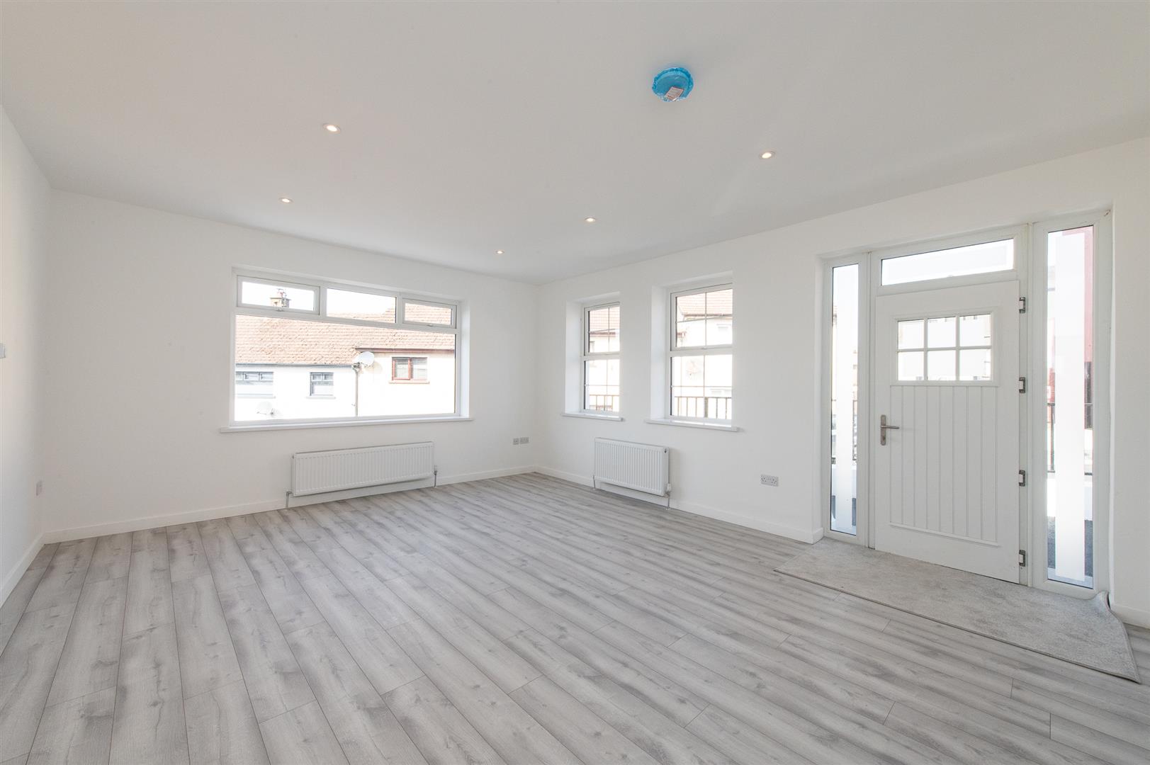 Front door leading into a spacious, bright lounge with dual aspect windows making the most of the light. Newly laid laminate flooring and recessed spotlights. A newly fitted, good size kitchen complete with a range of high and low level units, with integrated oven/hob, space for washing machine and back door. Bedroom one is a double, laid in new carpet with a hot press and dual aspect windows. Bedroom two with newly laid carpet and double windows again allowing for a bright space. The bathroom provides a new three piece suite, with a shower over the bath and vinyl flooring.
