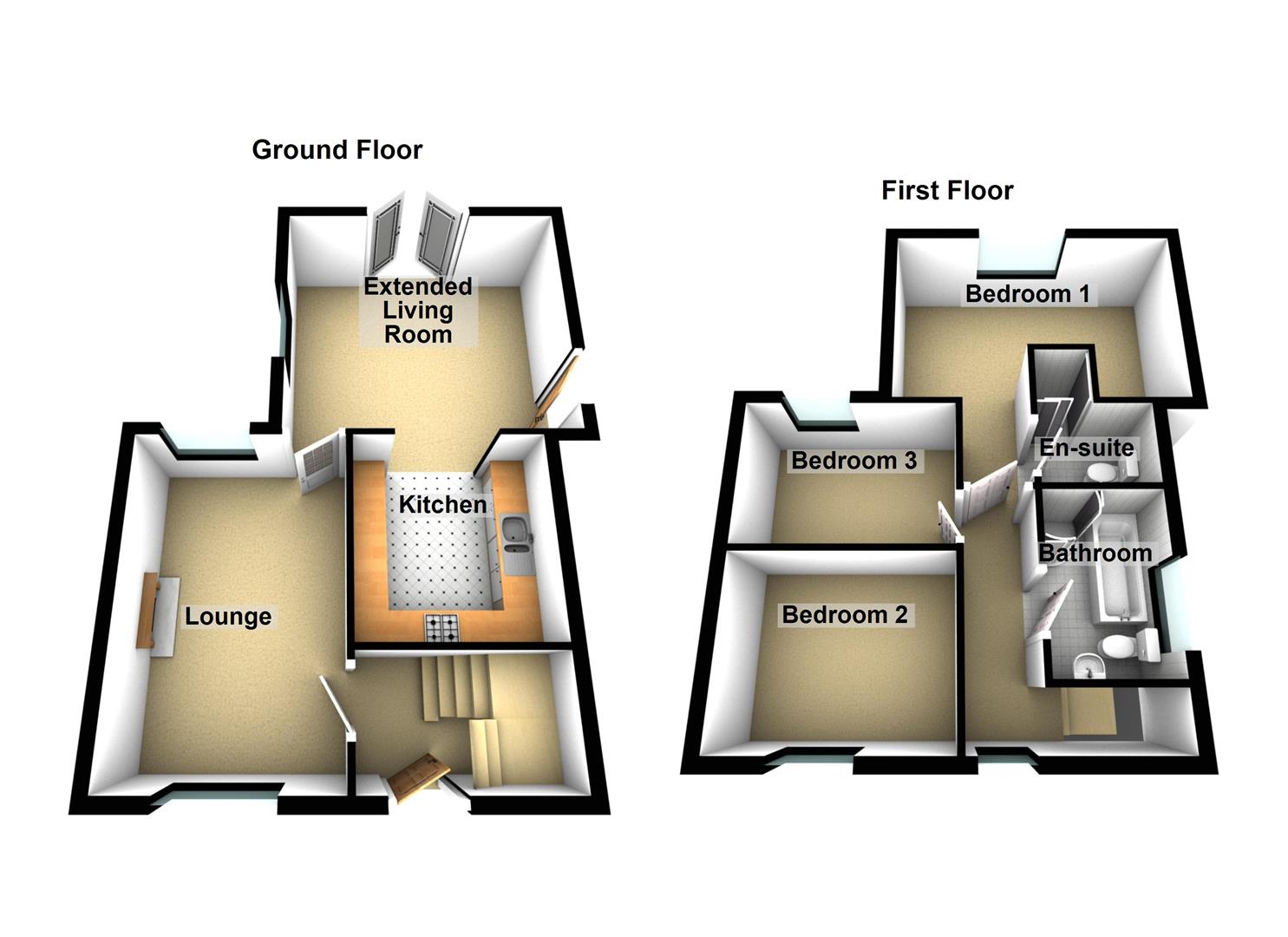 The internal accommodation now comprises, lounge to the front, large kitchen / dining / living to the rear, whilst upstairs there are three good sized bedrooms, principle with en-suite and white bathroom suite with separate shower cubicle.