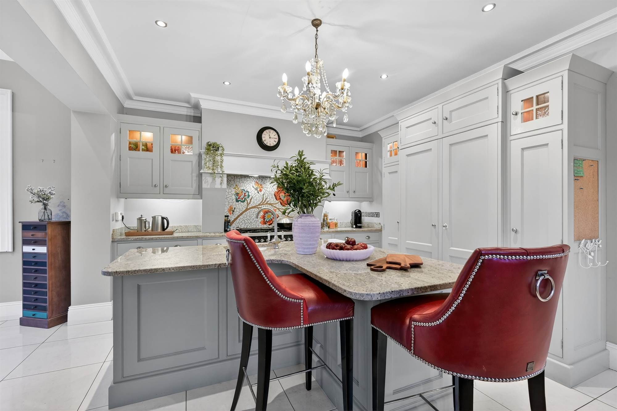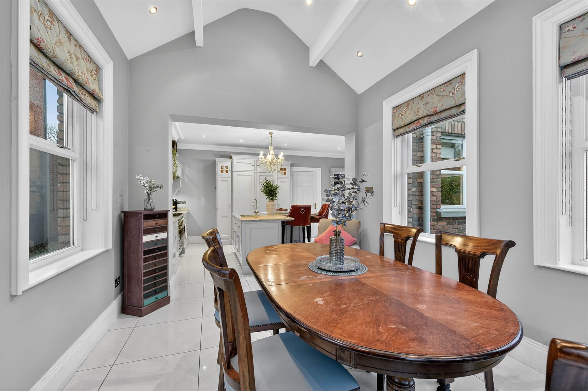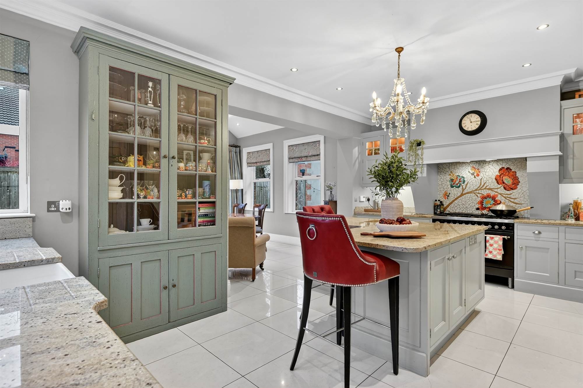 The generously proportioned accommodation comprises five bedrooms, four reception areas, providing flexible and spacious living throughout. A stunning bespoke kitchen further elevates the appeal of this outstanding home.