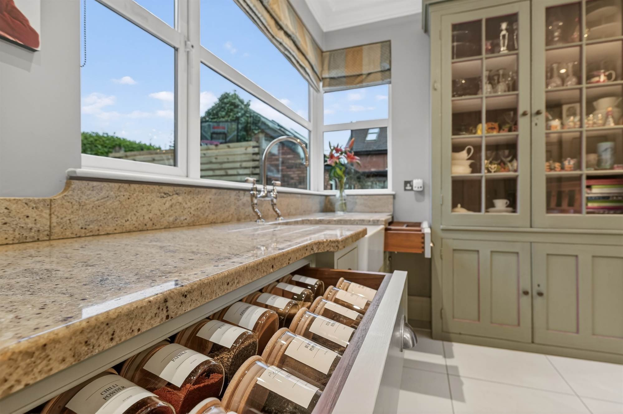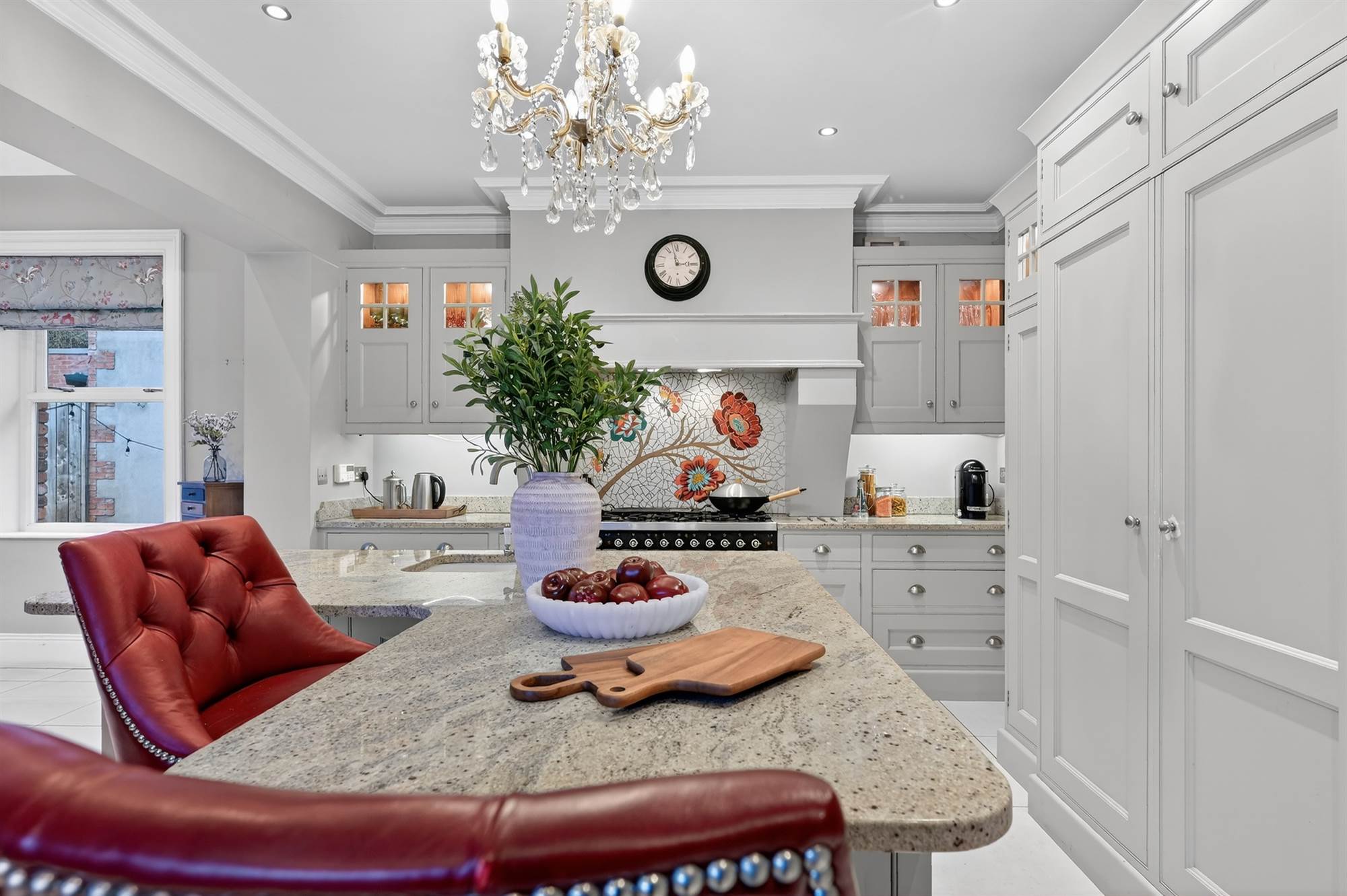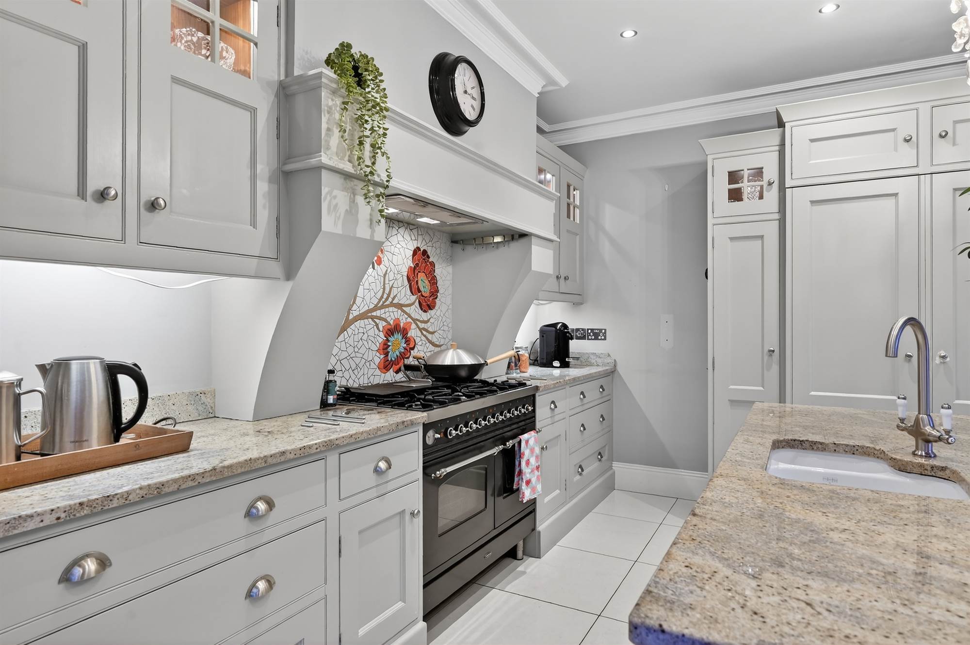The generously proportioned accommodation comprises five bedrooms, four reception areas, providing flexible and spacious living throughout. A stunning bespoke kitchen further elevates the appeal of this outstanding home.