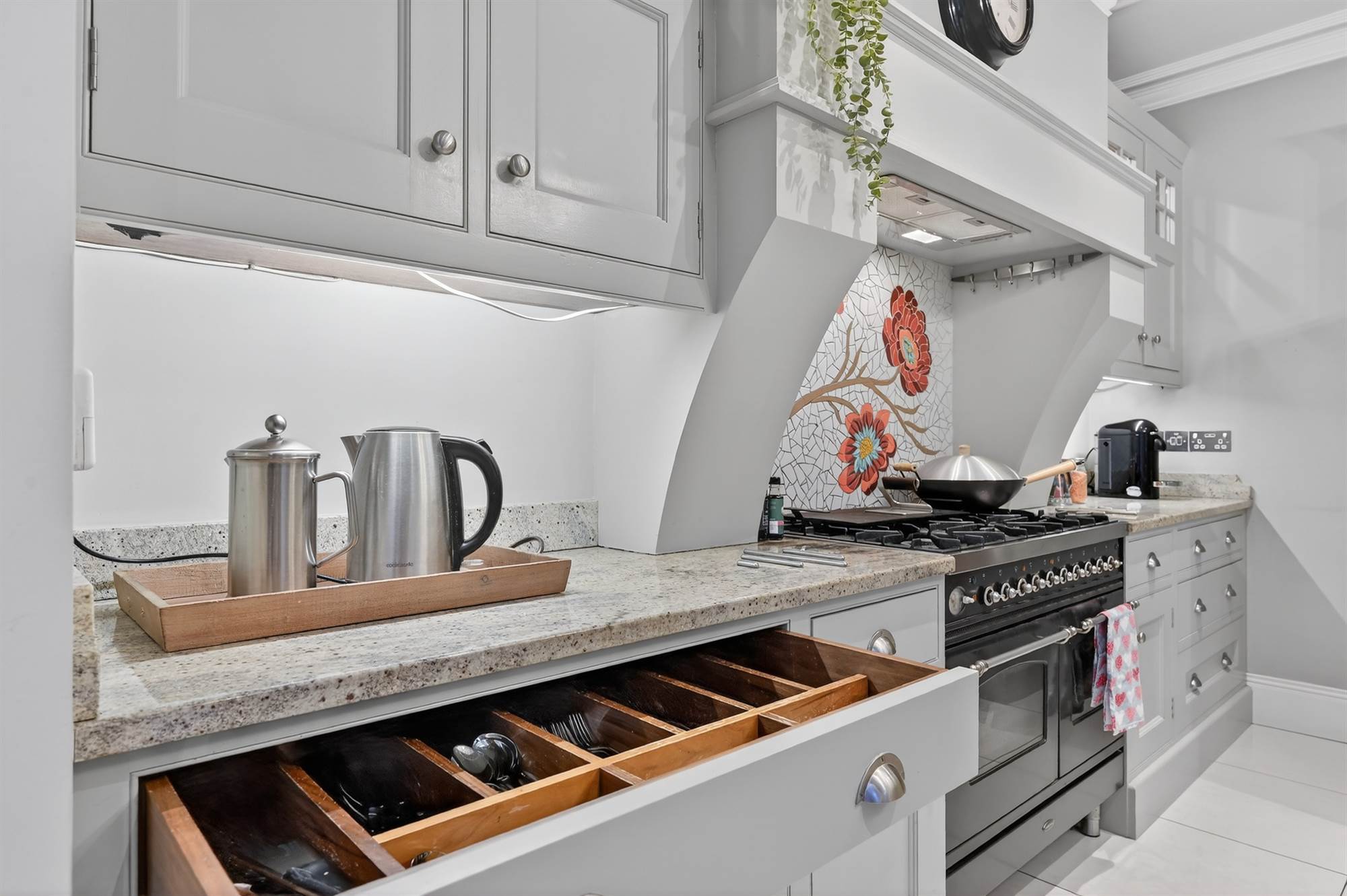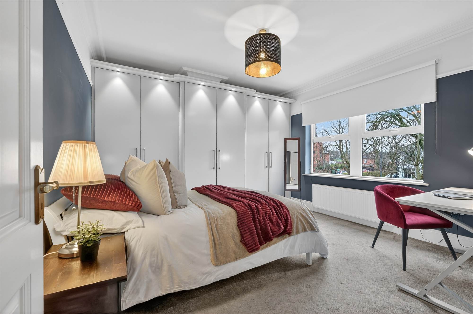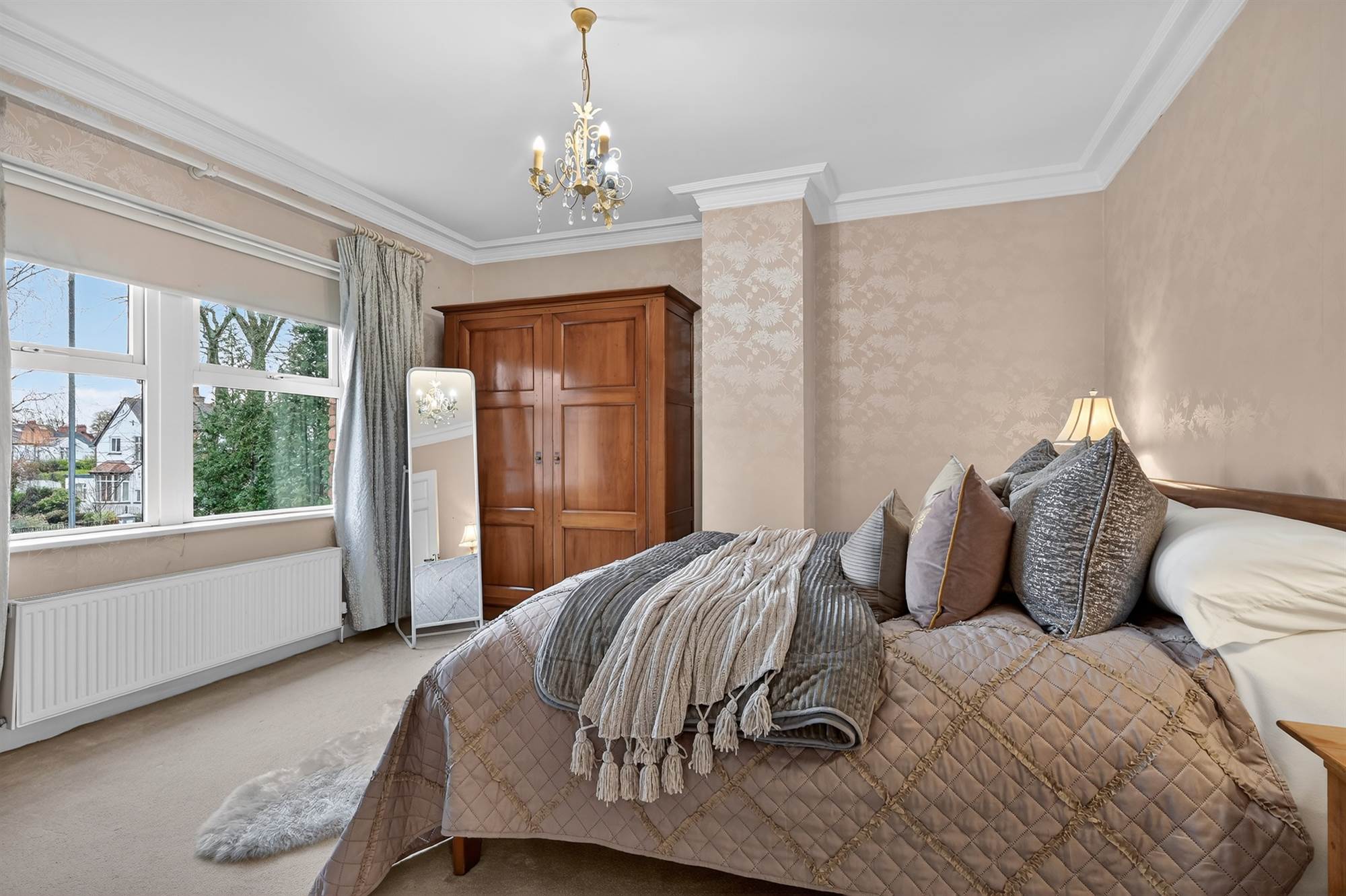 Bespoke wall-to wall built-in wardrobes with excellent storage. Concealed Worcester gas fired boiler. Cornice ceiling.