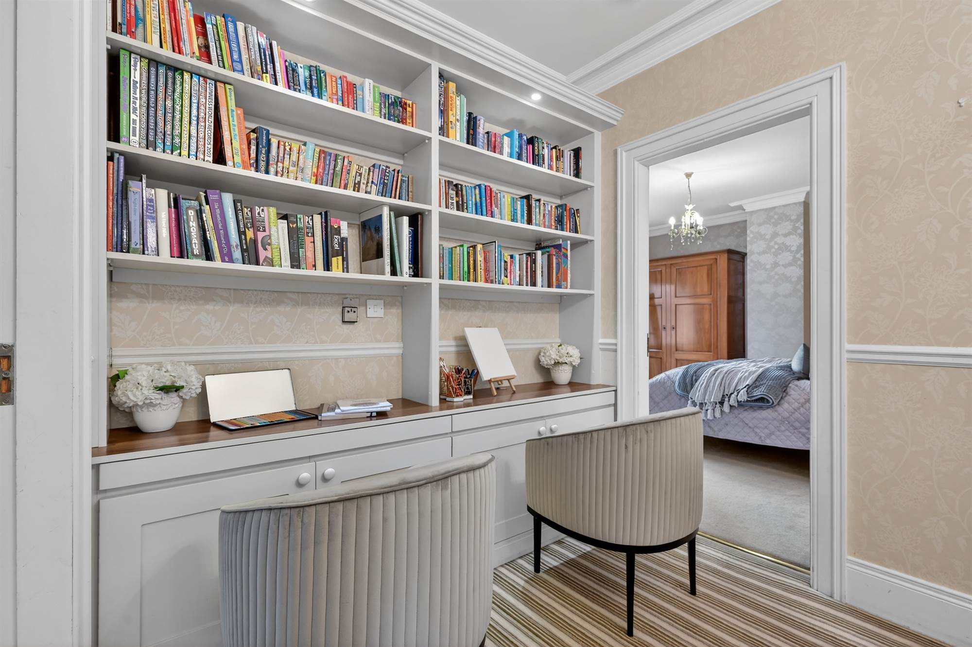 Built-in wall to wall wardrobes, cornice ceiling, picture rail.