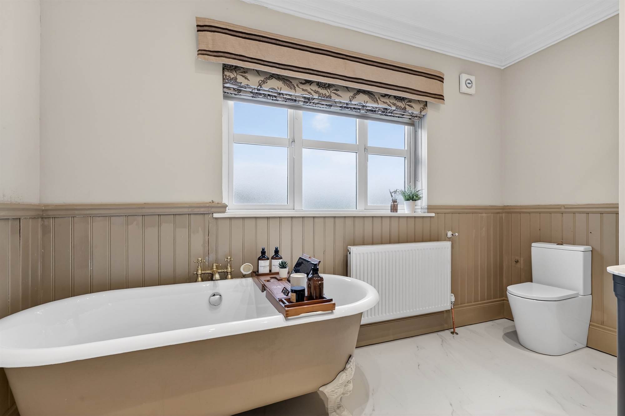 Recently installed luxurious bathroom with roll top bath