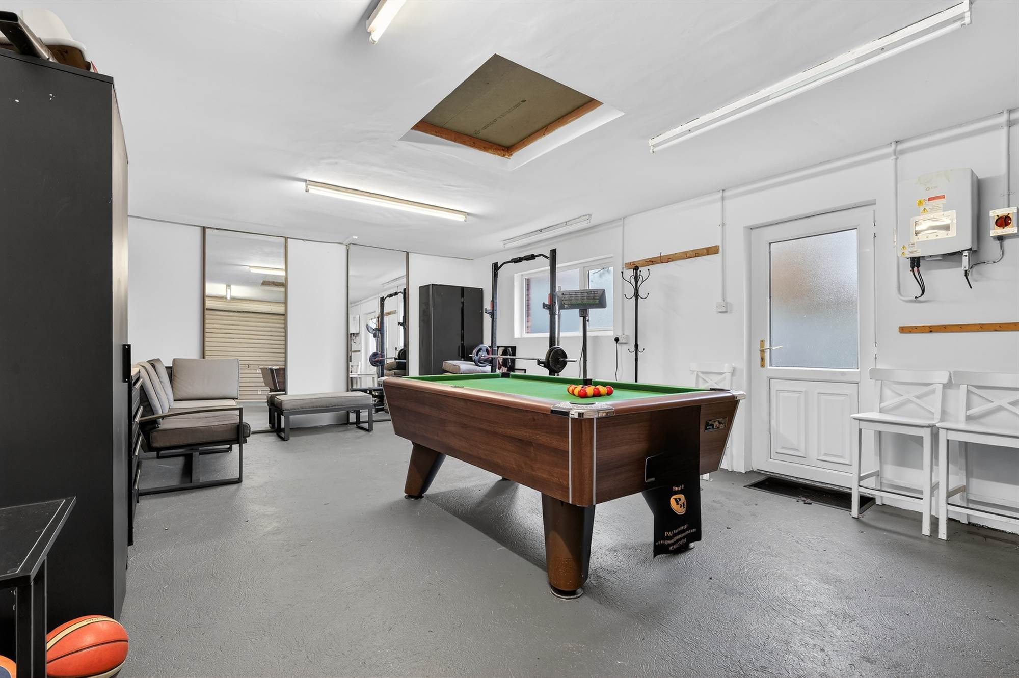 Electric up and over door, light and power, built-in Solis solar panel system.