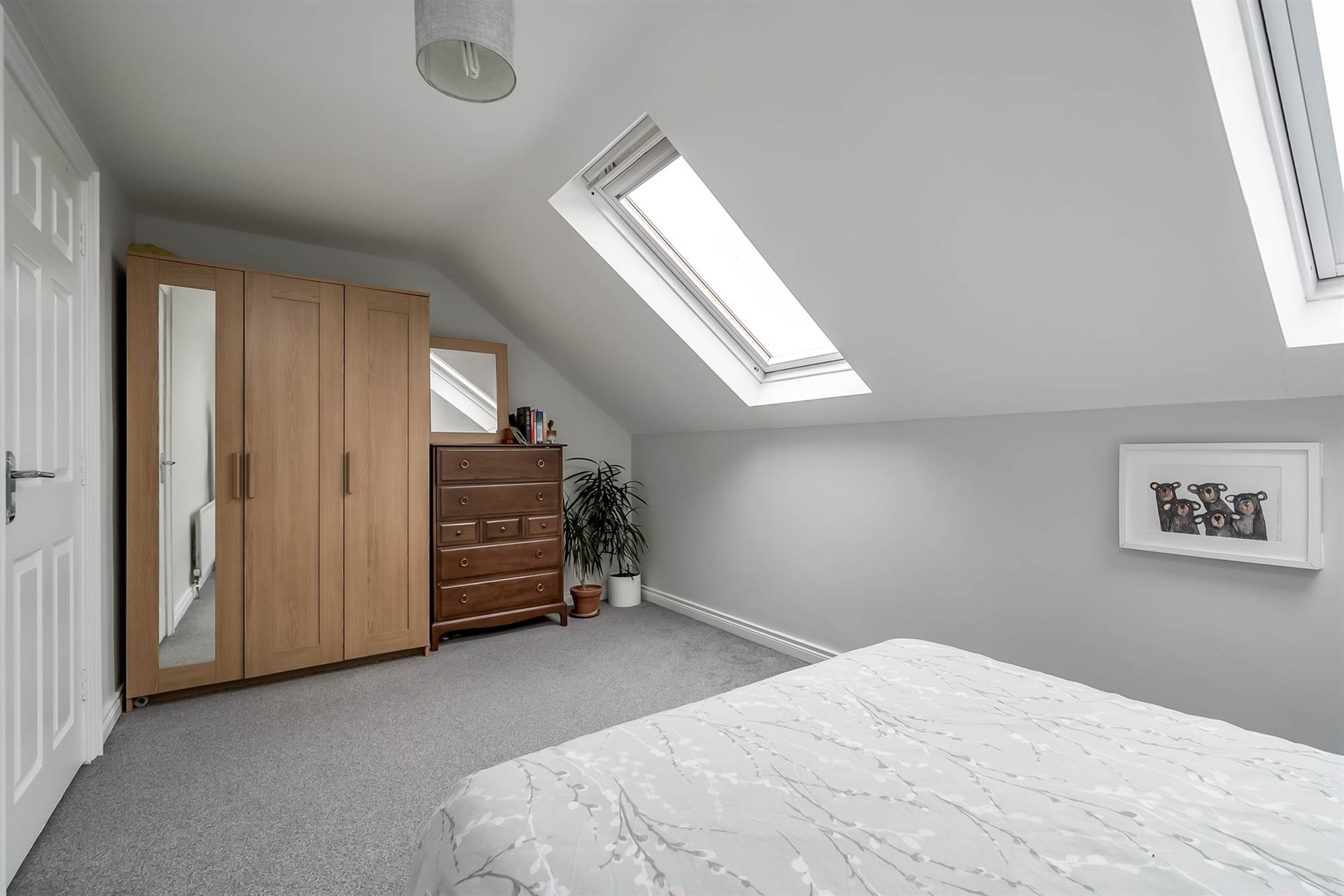 (at widest points). Storage into eaves. Velux windows.