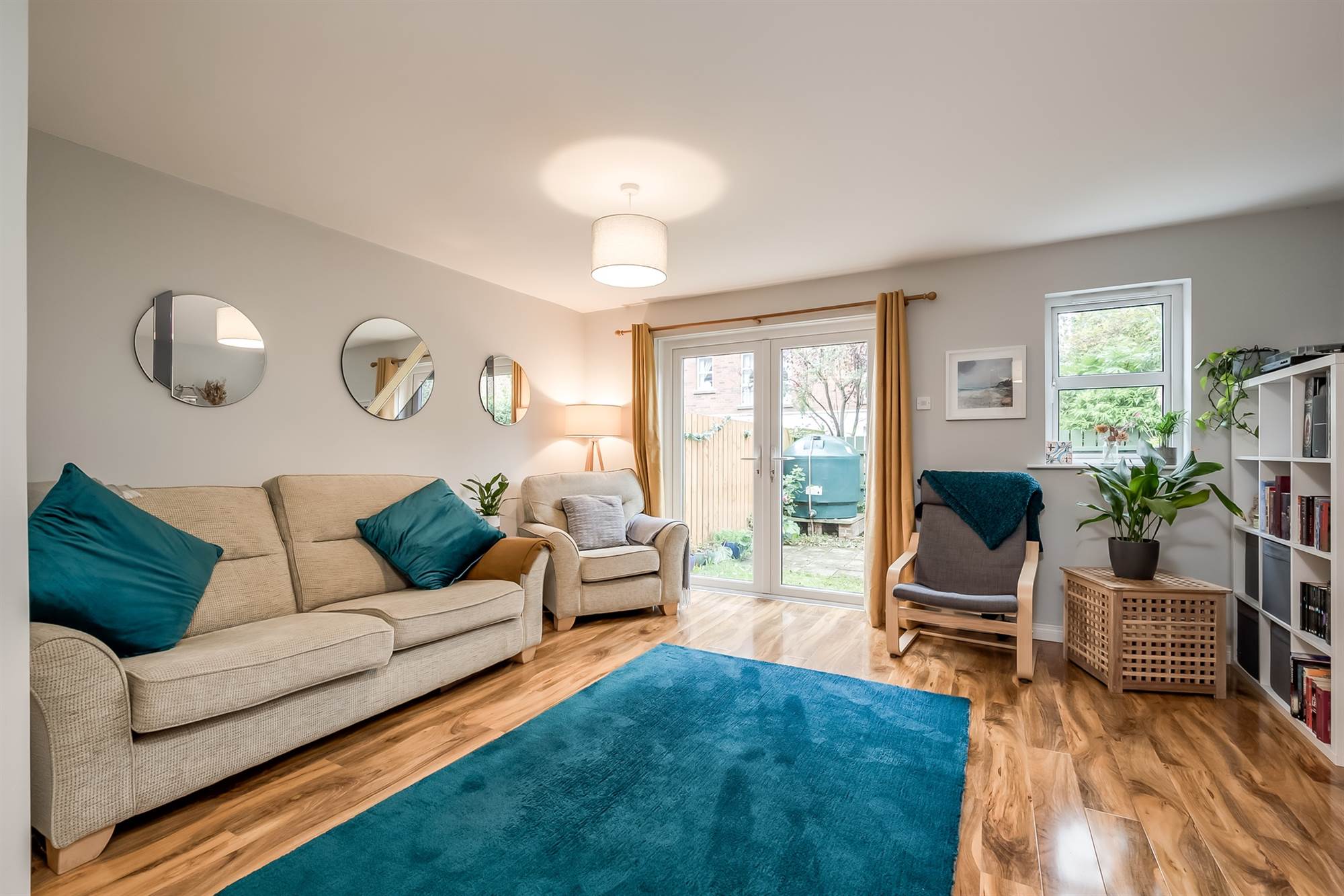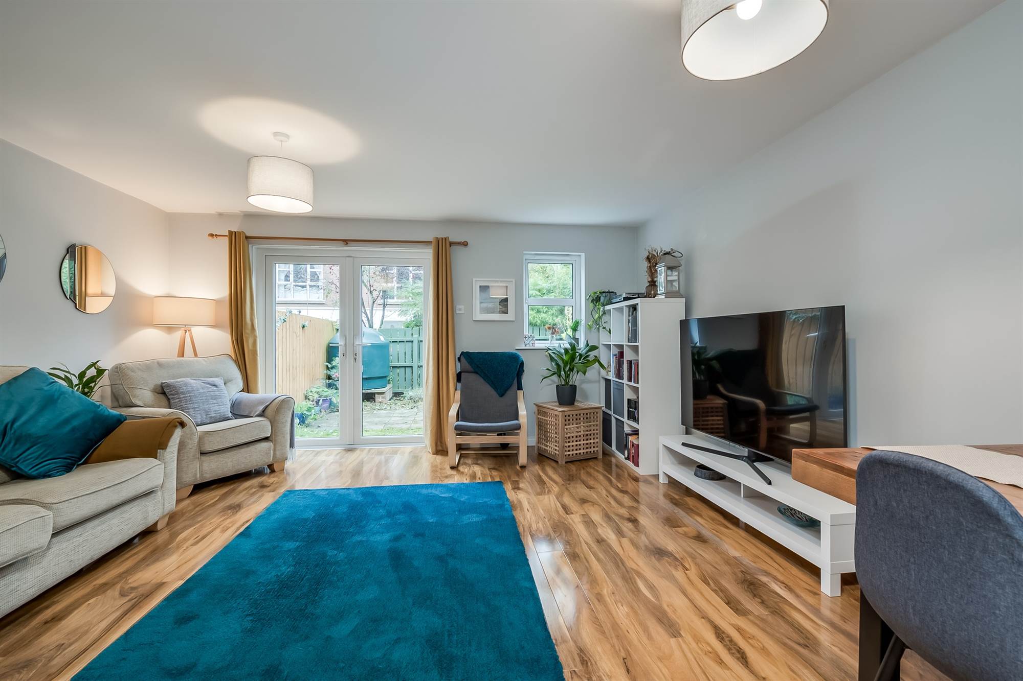 (at widest points). Polished wood floor, uPVC double patio doors to rear.