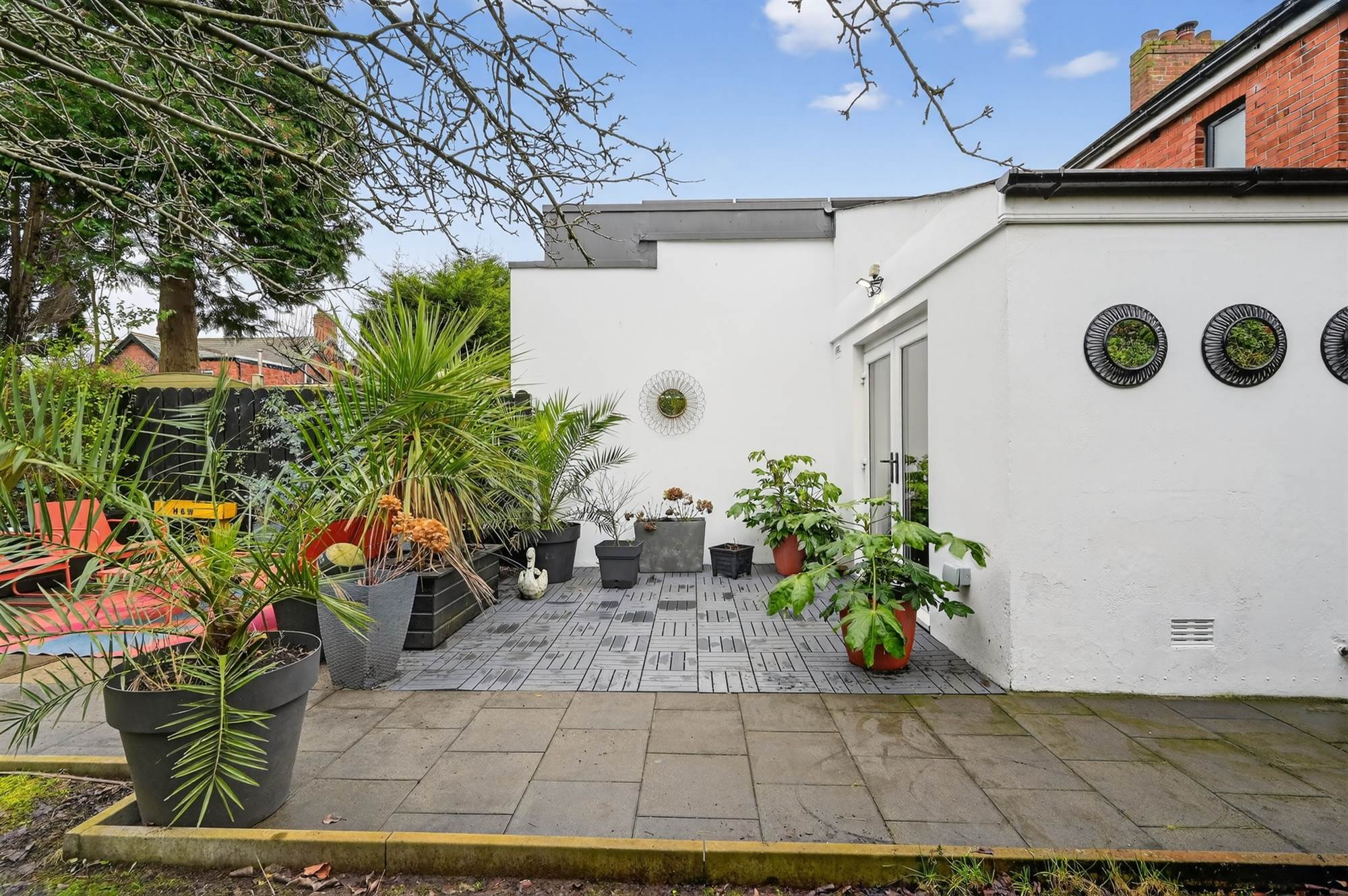 Laid in lawns with paved patio and boundary fencing.