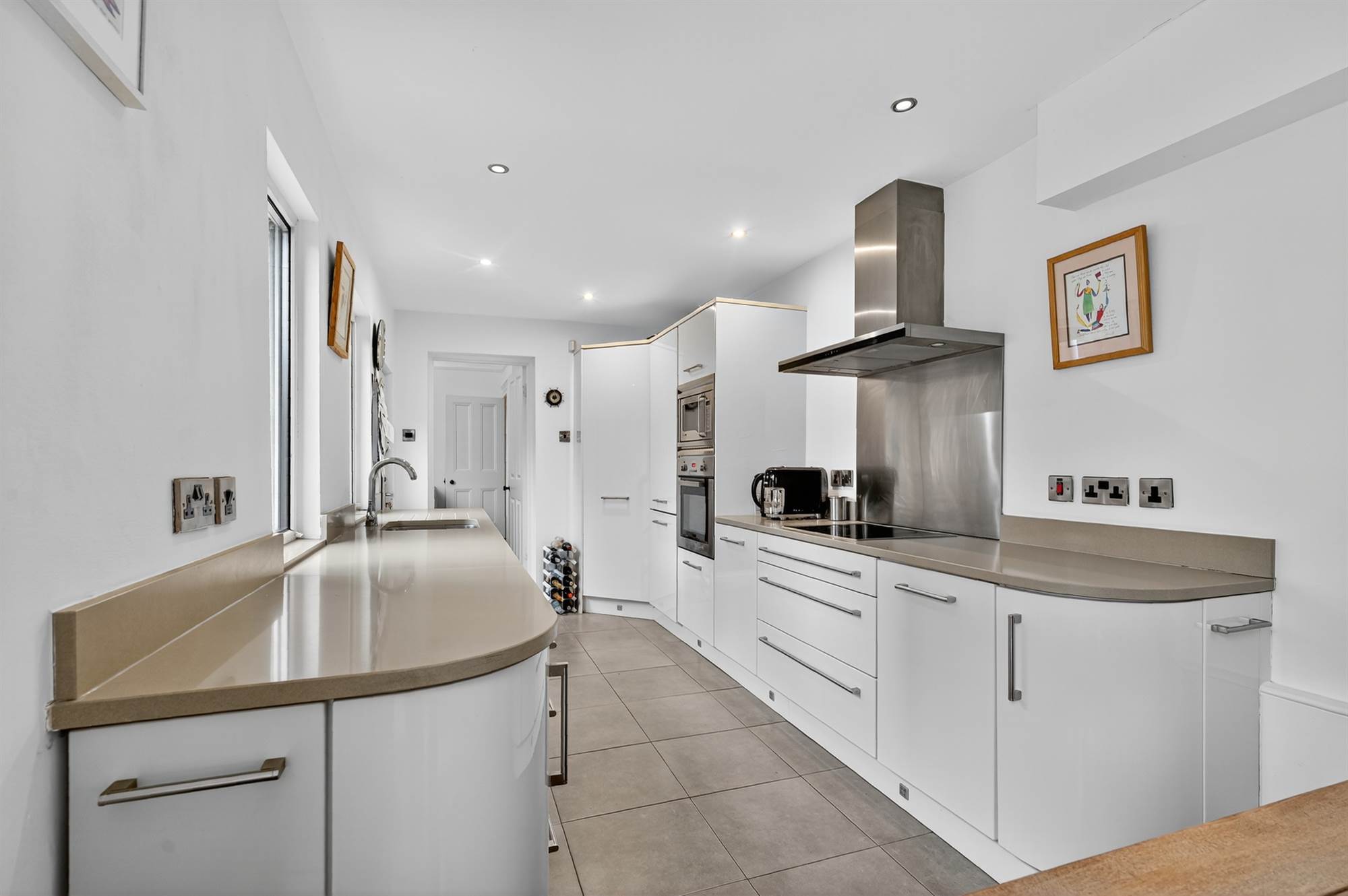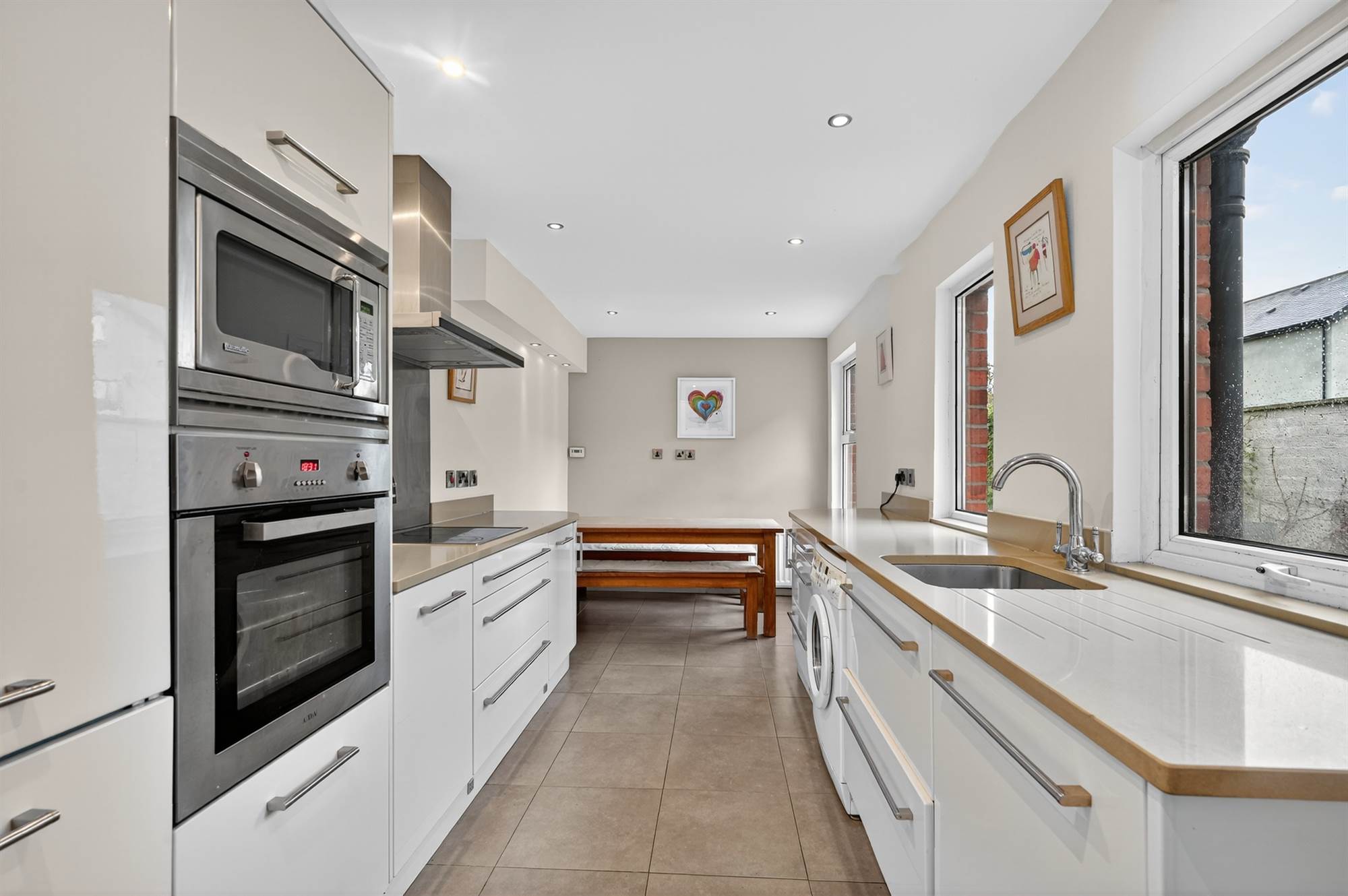 Superb range of modern high and low level units, work surfaces, recessed sink unit with mixer taps, plumbed for washing machine. Ceramic hob, stainless steel splashback, stainless steel extractor hood/fan, built-in oven and microwave.