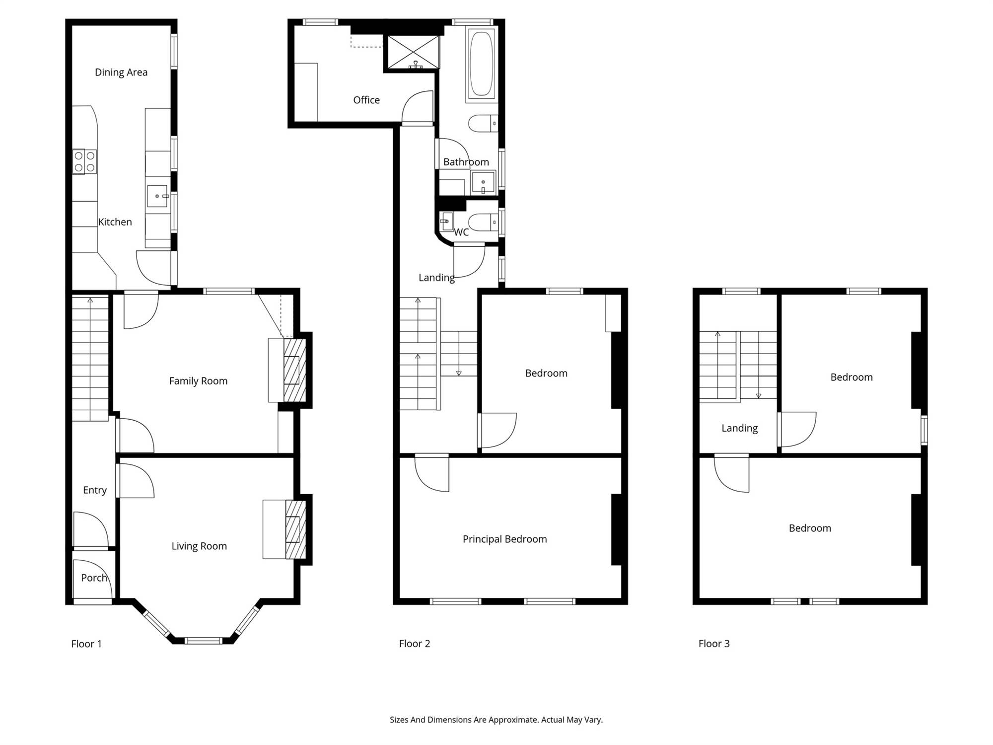 The excellent accommodation comprises on the ground floor, two reception rooms, an excellent modern fitted kitchen and dining area; on the first floor are two bedrooms, a study and superb family bathroom and complemented by a further two bedrooms on the top floor.