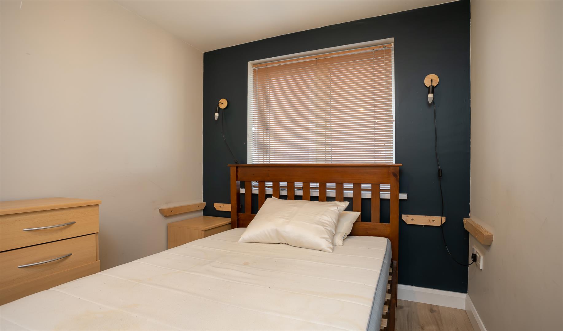 A second bedroom with laminate flooring, skirting boards, useful storage with uPVC window.