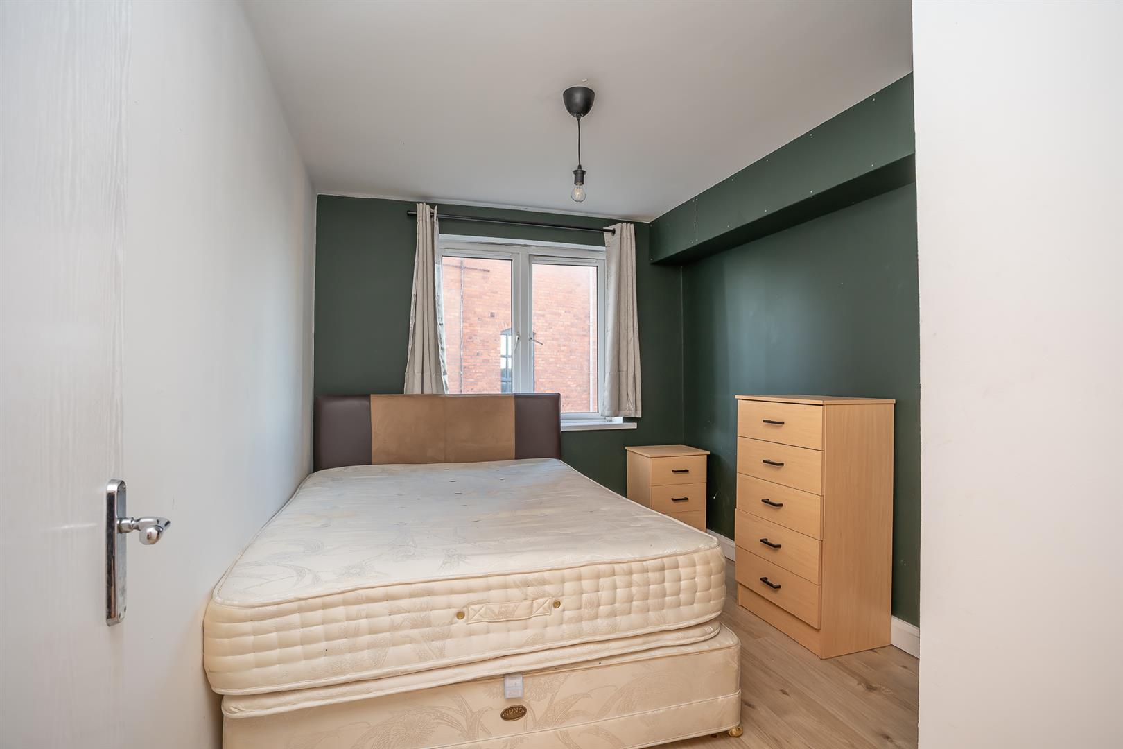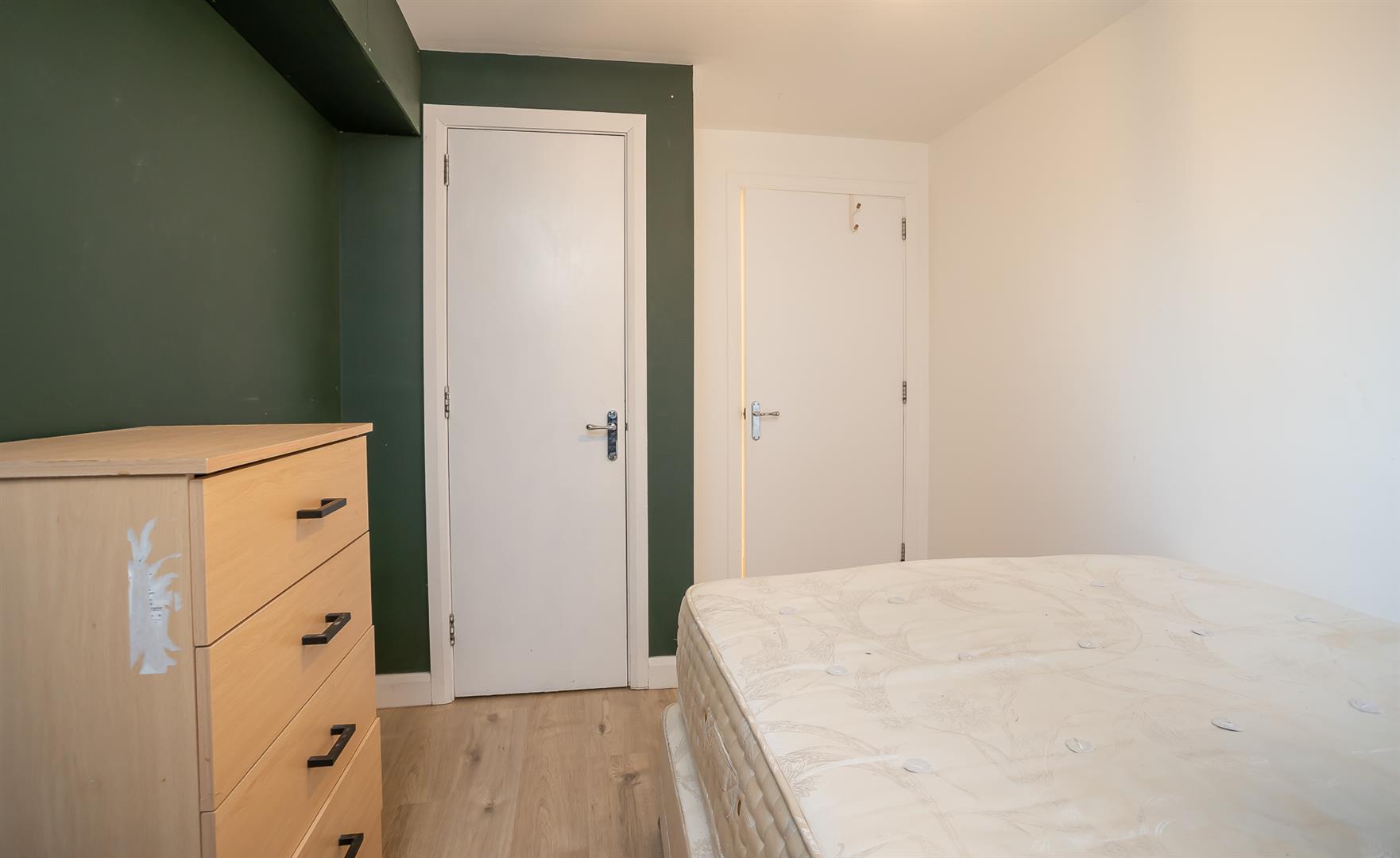 A large double bedroom with storage cupboard, laminate flooring, skirting boards and uPVC window