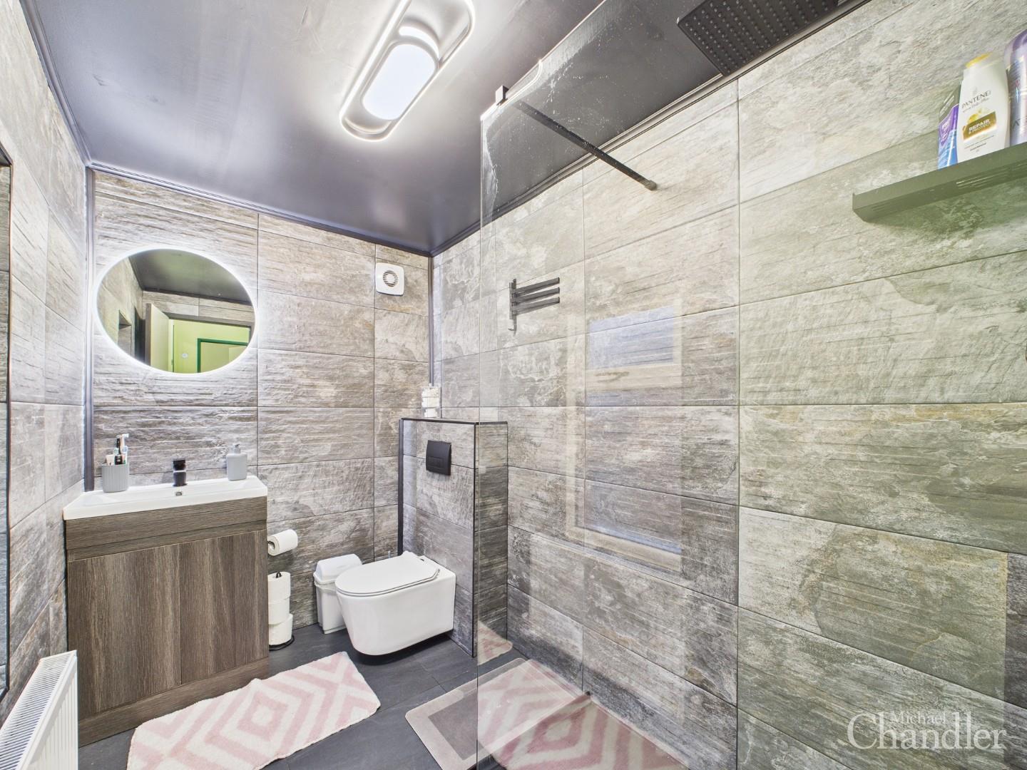 Upstairs there are two generously sized bedrooms, both well presented and filled with natural light. The accommodation is further enhanced by a luxurious bathroom, finished to a high standard and featuring a contemporary three-piece suite, including a walk-in shower.