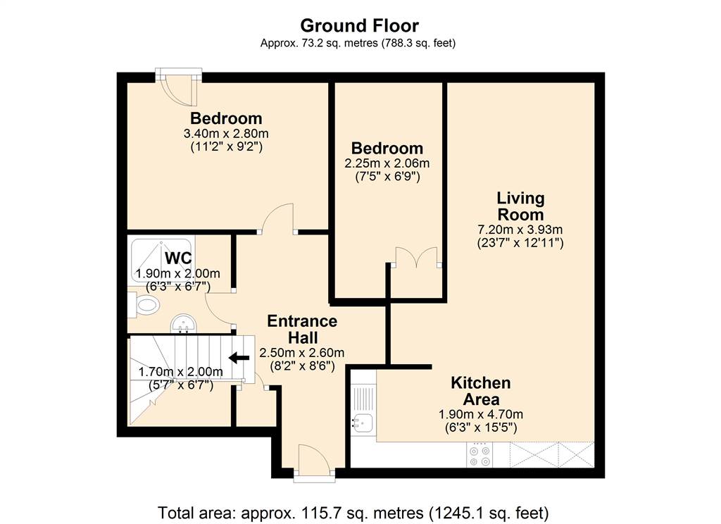 OPEN PLAN LIVING KITCHEN 22' 10" X 15' 7" (6.96m X 4.75m)
