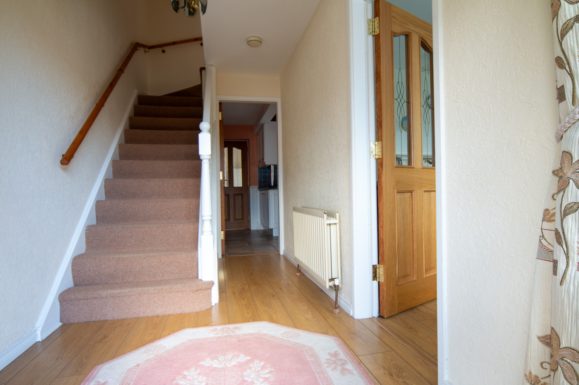 10 Legacorry Park provides a low maintenance garden to the front, whilst to the rear there is a private and enclosed patio area, with additional wooden shed included in the sale providing further storage.