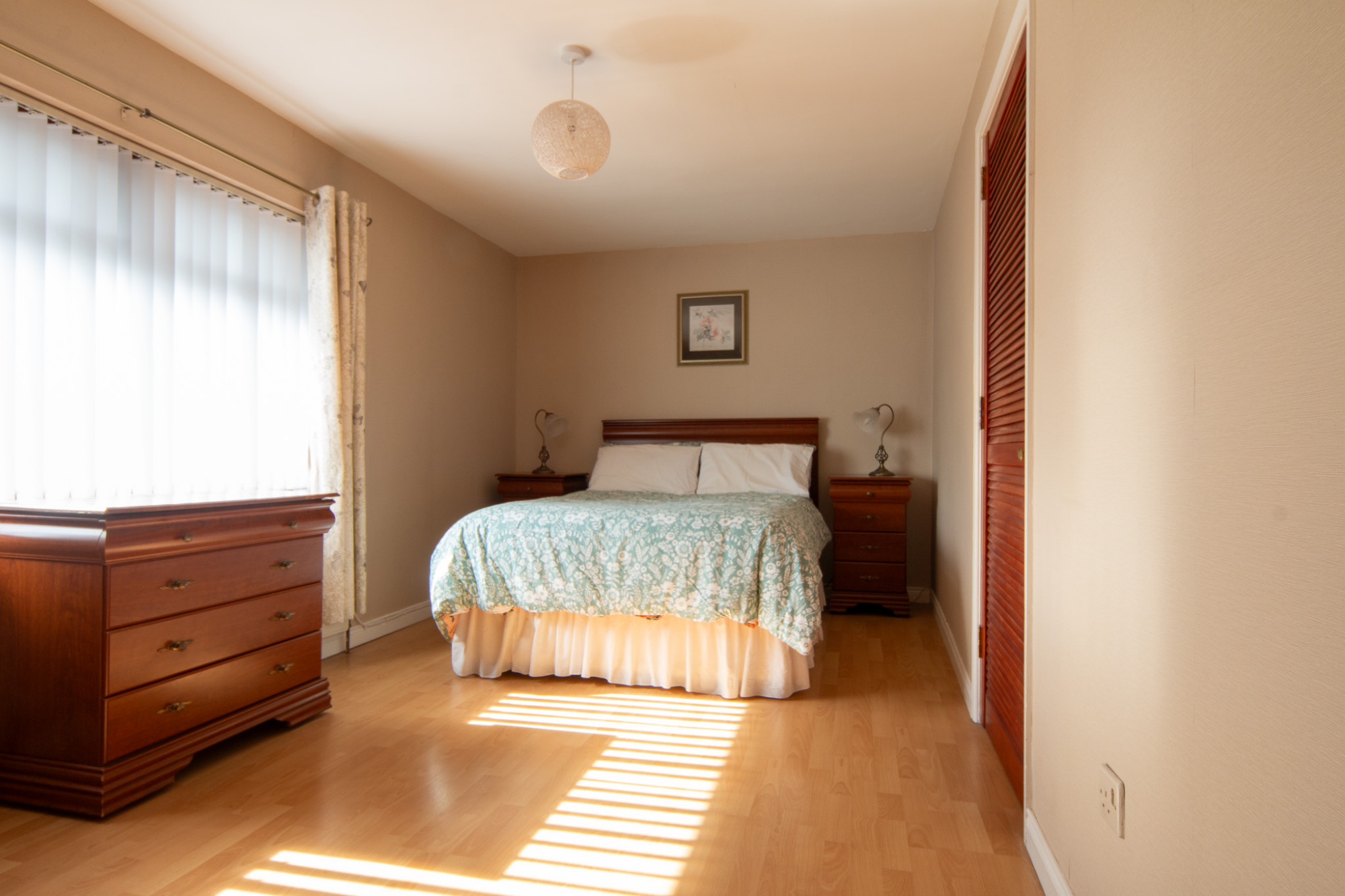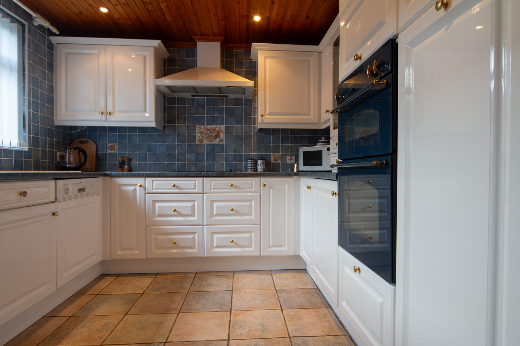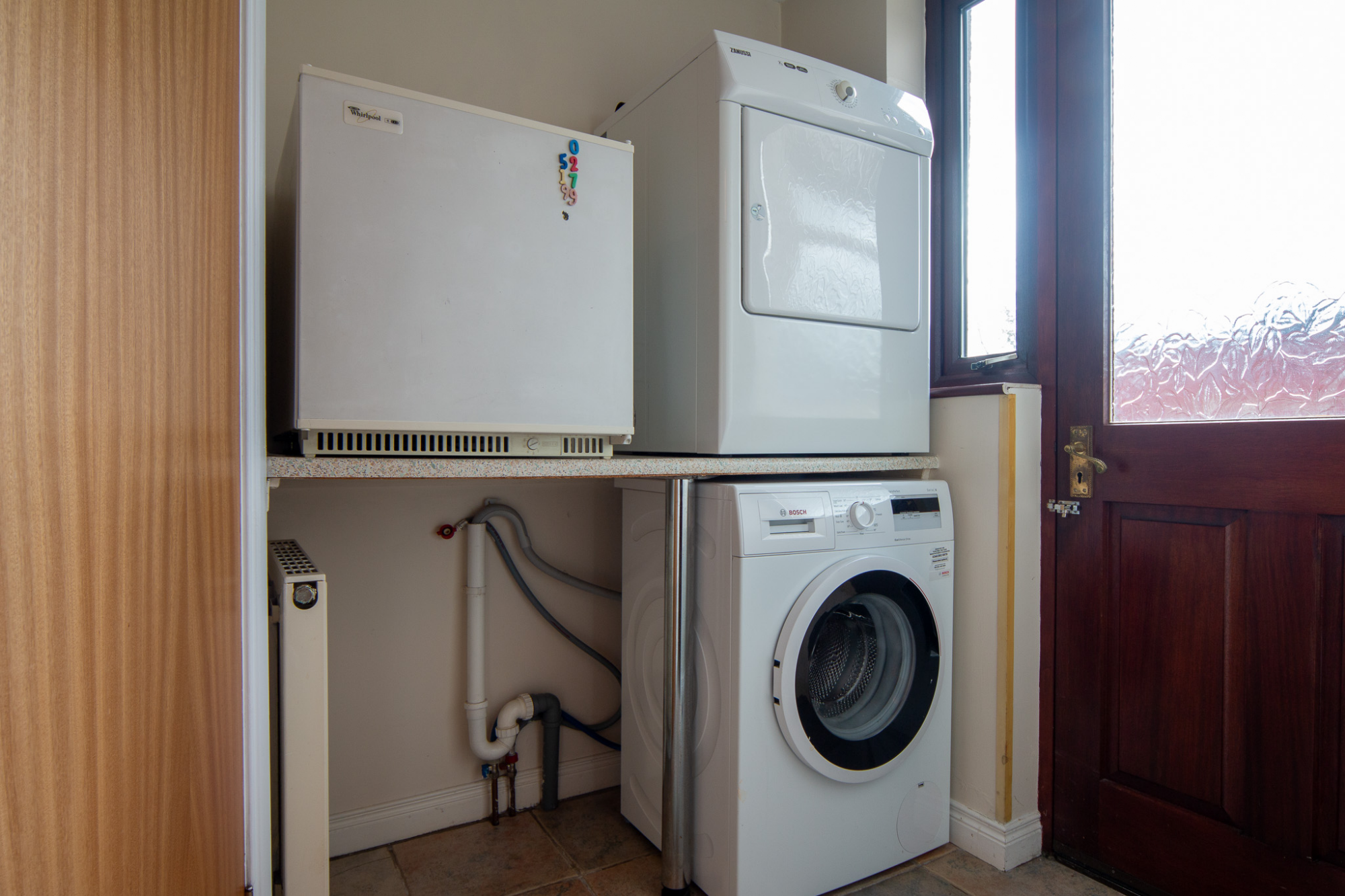 The kitchen again carries a neutral colour scheme, with storage provided via a mix of low-and-high-rise units. The spacious nature of this property's kitchen allows ample space for the dining table. The floor is tiled meaning for a practical approach with regards to cleaning. Also incorporated into the kitchen are the fridge and oven. Access to the rear of the property can also be gained through the kitchen, additionaly there is a built in storage unit included in the kitchen/dining area. A widely sought-after asset in todays market!