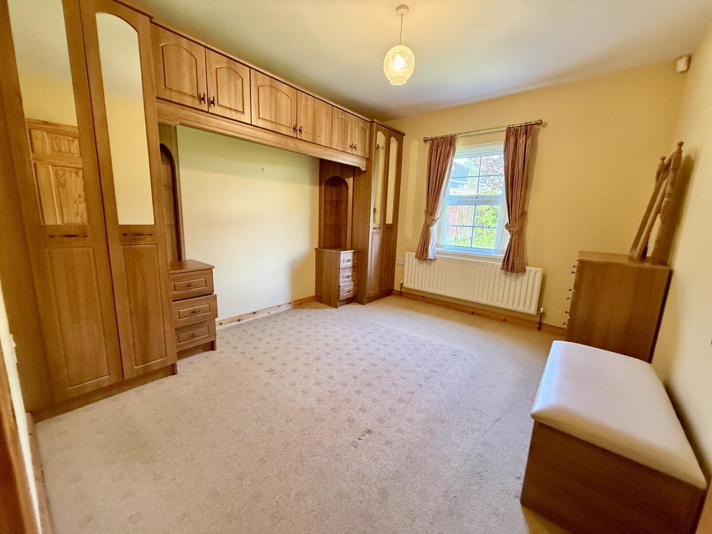 Generous double bedroom with built-in wardrobe space, front aspect outlook, and access to a private en suite.