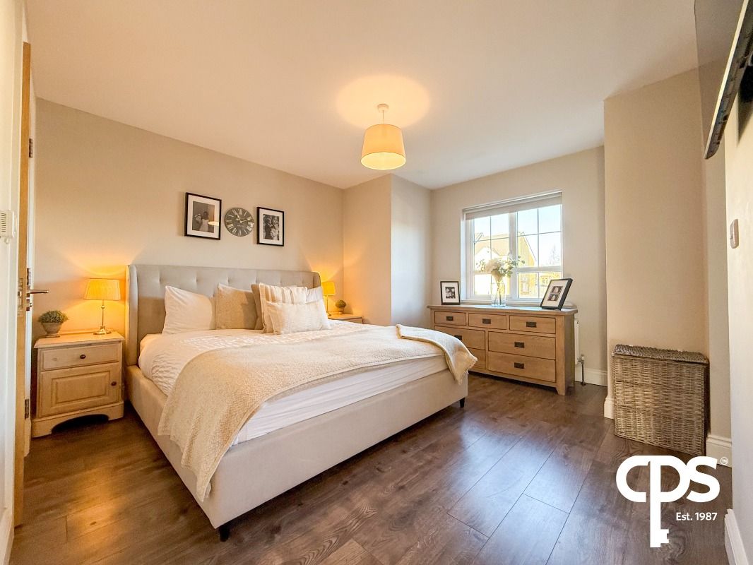 Generous principal bedroom with laminate flooring, double radiators, and ample space for furniture.