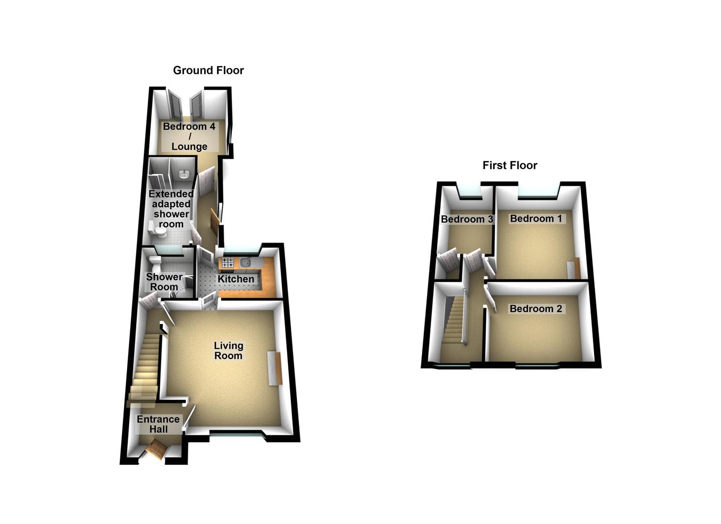 Extended large shower room & additional ground floor shower suite