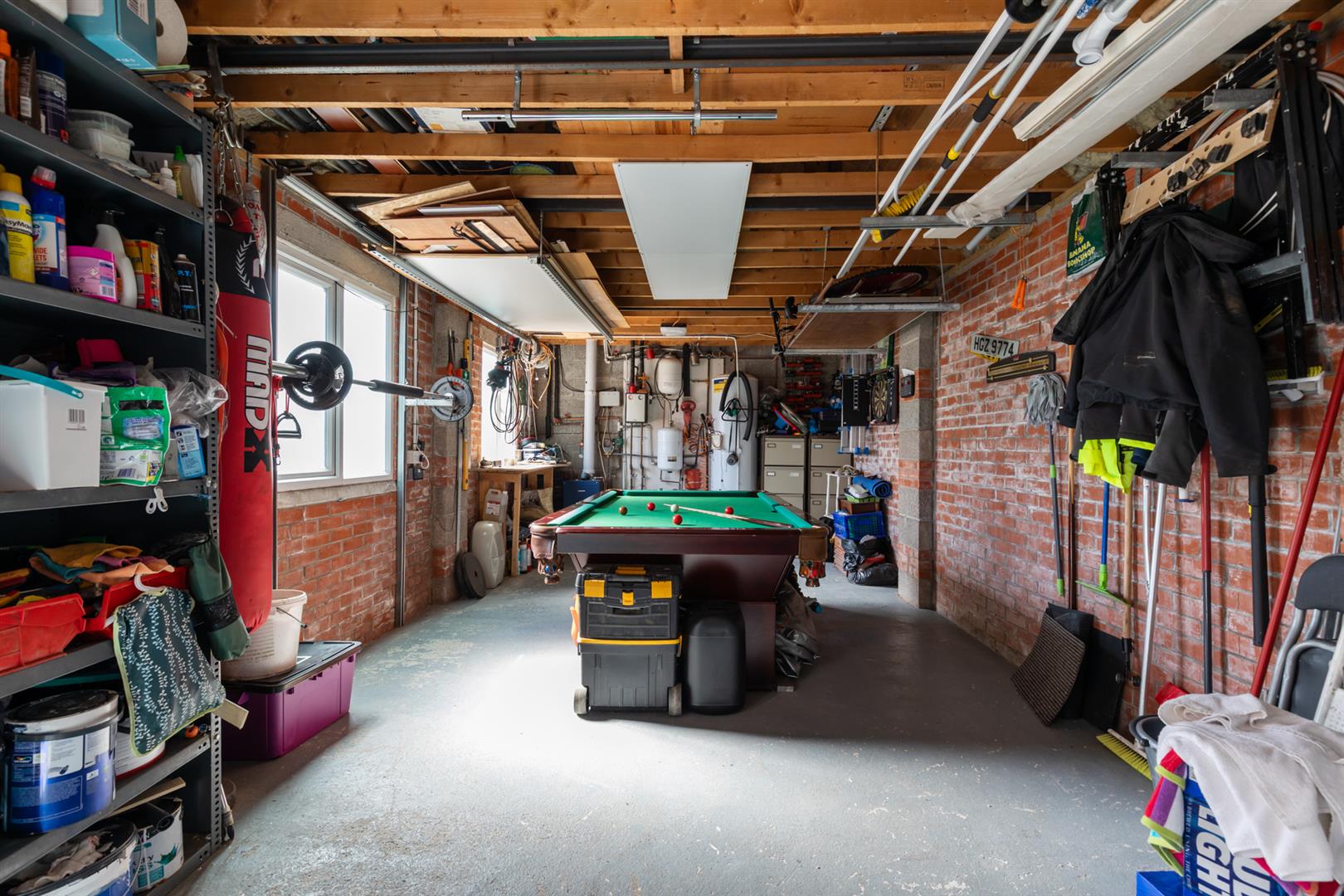 Outside, there is a driveway with ample parking leading to a detached garage and an enclosed rear garden that has been flagged for ease of maintenance that captures the afternoon and early evening sun.