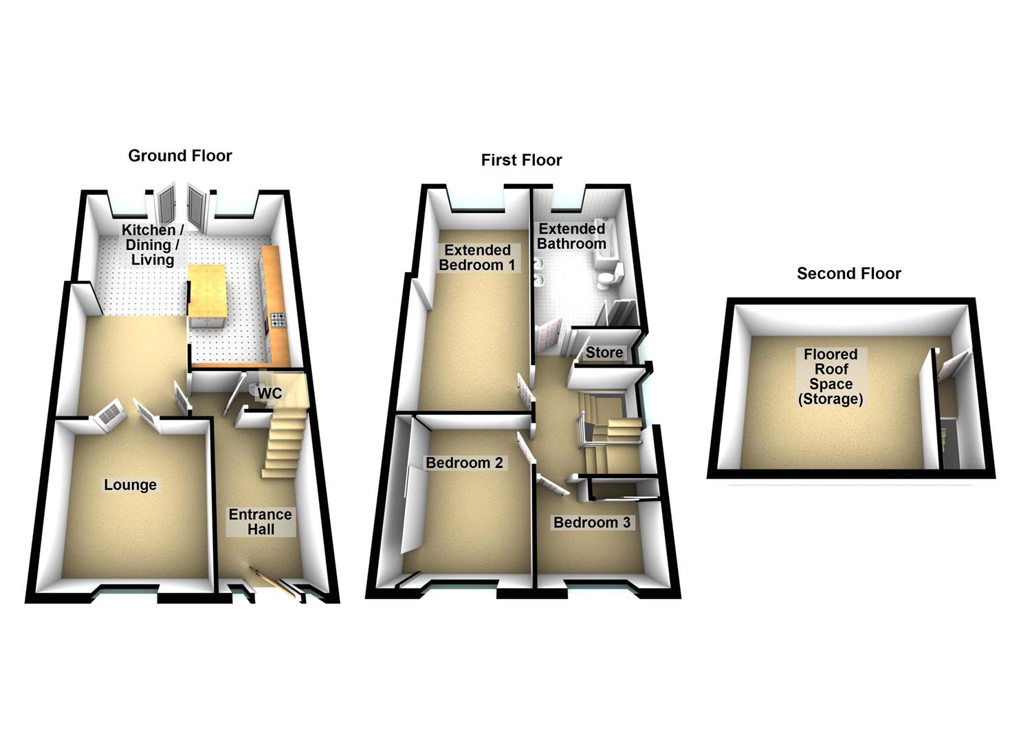 Upstairs there are three bedrooms, principle (22'4 x 10'6) , a large bathroom suite with a separate shower and developed roof space for storage.