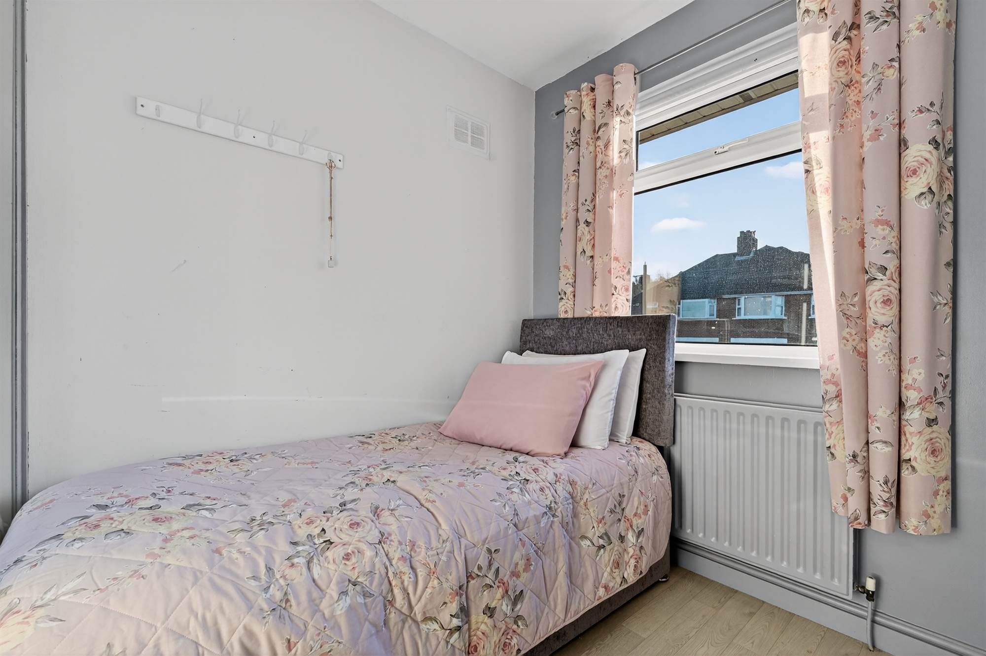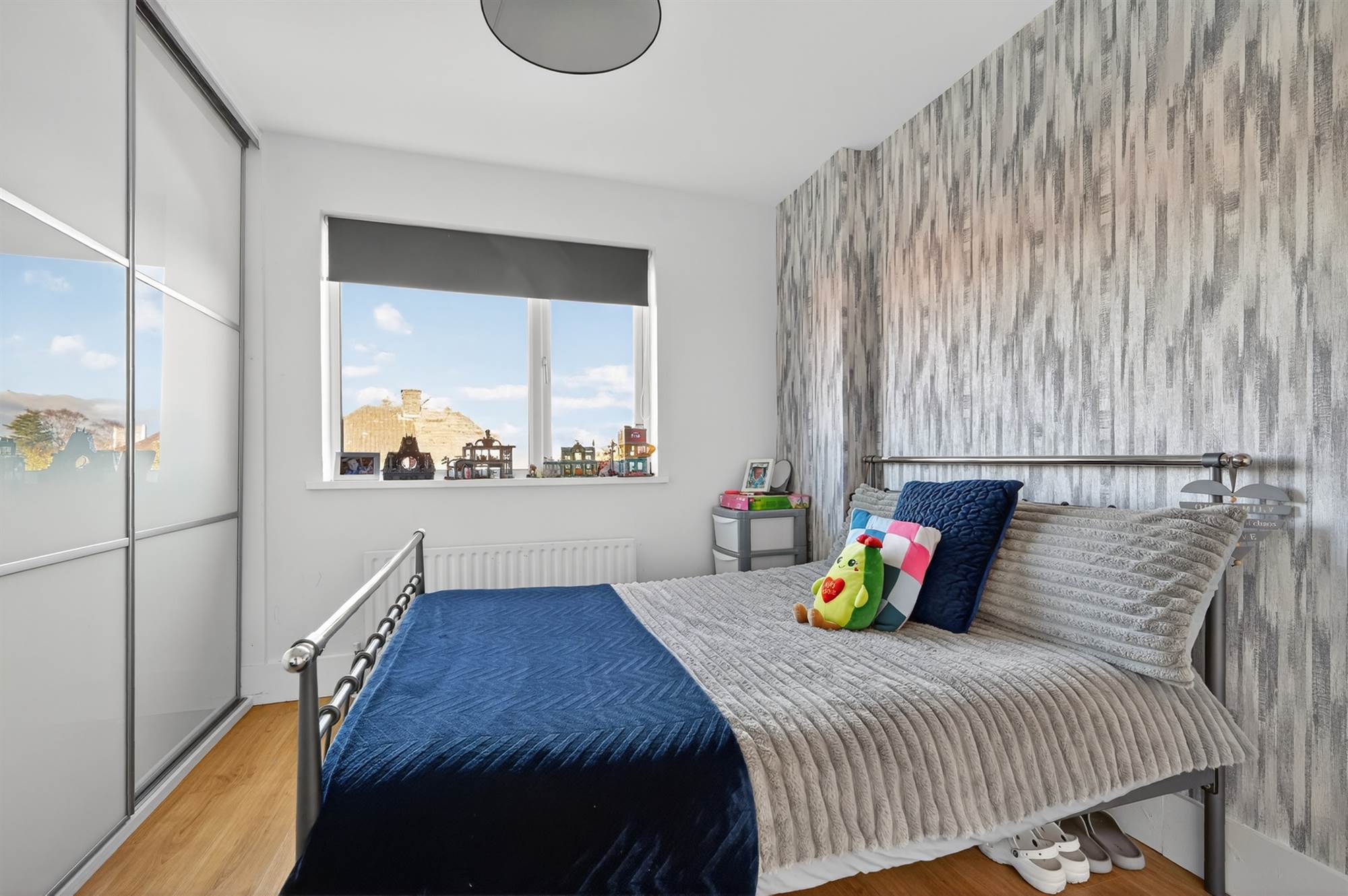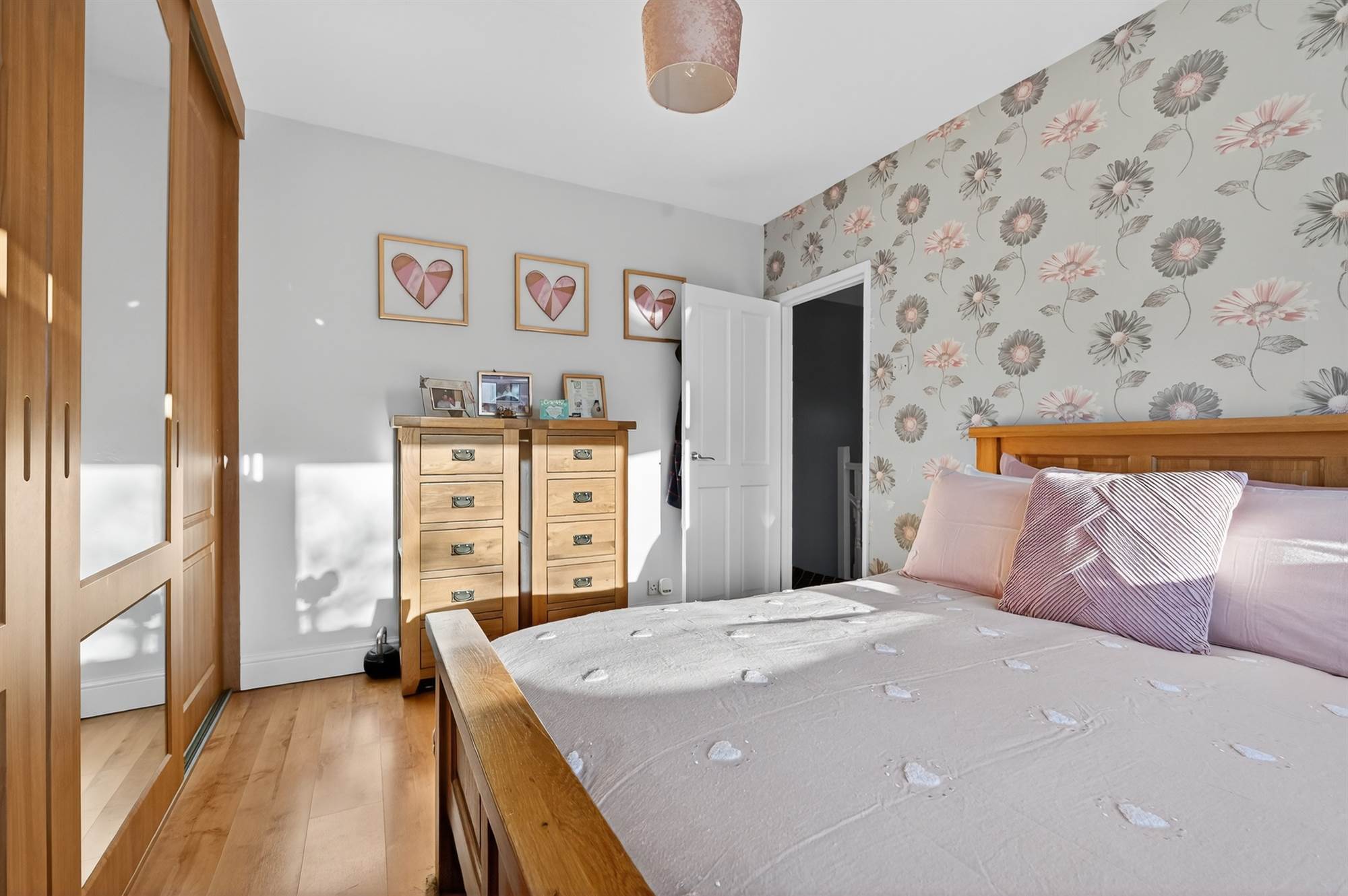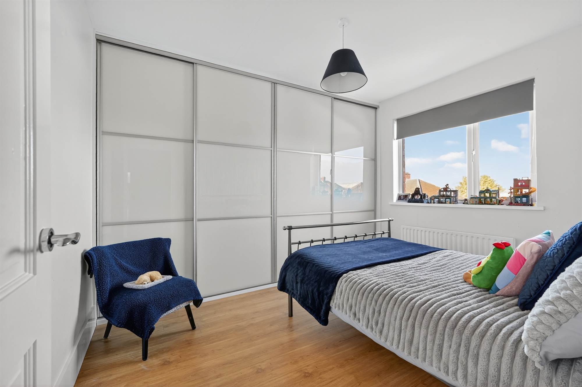 Laminate wooden floor. Extensive range of wall-to-wall robes with sliding doors.