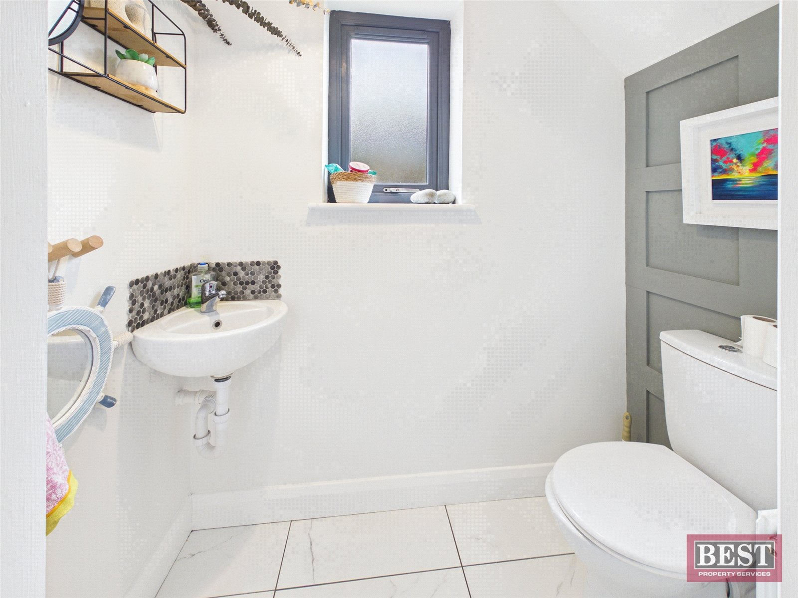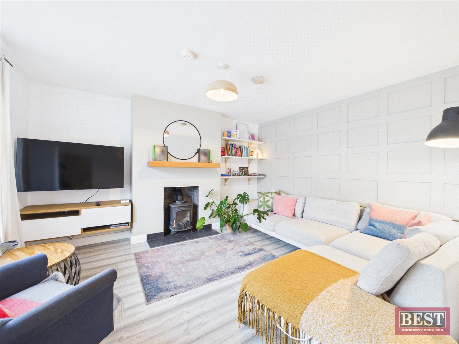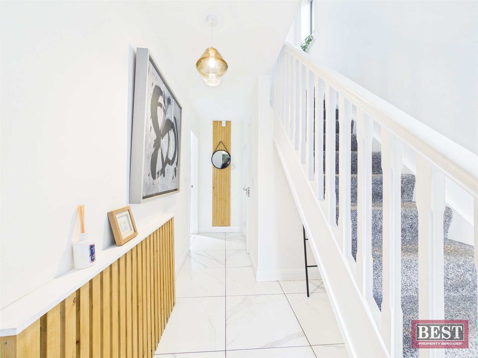 On entering the property, you will be greeted by a light and bright entrance hall with tiled flooring. The living room to the front of the property comes with a wood burning stove, built in storage and panelled wall. The kitchen/ dining room has a full range of upper and lower kitchen units and integrated appliances along with double doors leading directly to the rear garden and access to a separate utility room providing more storage space. Additionally, there is a downstairs w/c.