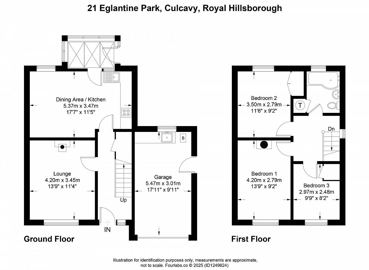 From Culcavy Road turn into Harrys Road and then right into Eglantine Park, turn right and then right again into cul de sac, number 21 is on the left.