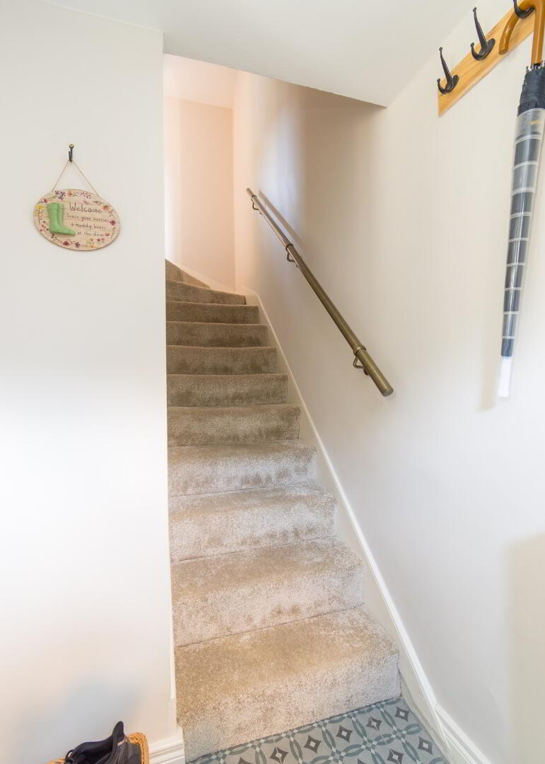 1.56m x 1.23m (5' 1" x 4' 0") Tiled floor, double panel radiator, stairs to access first floor.