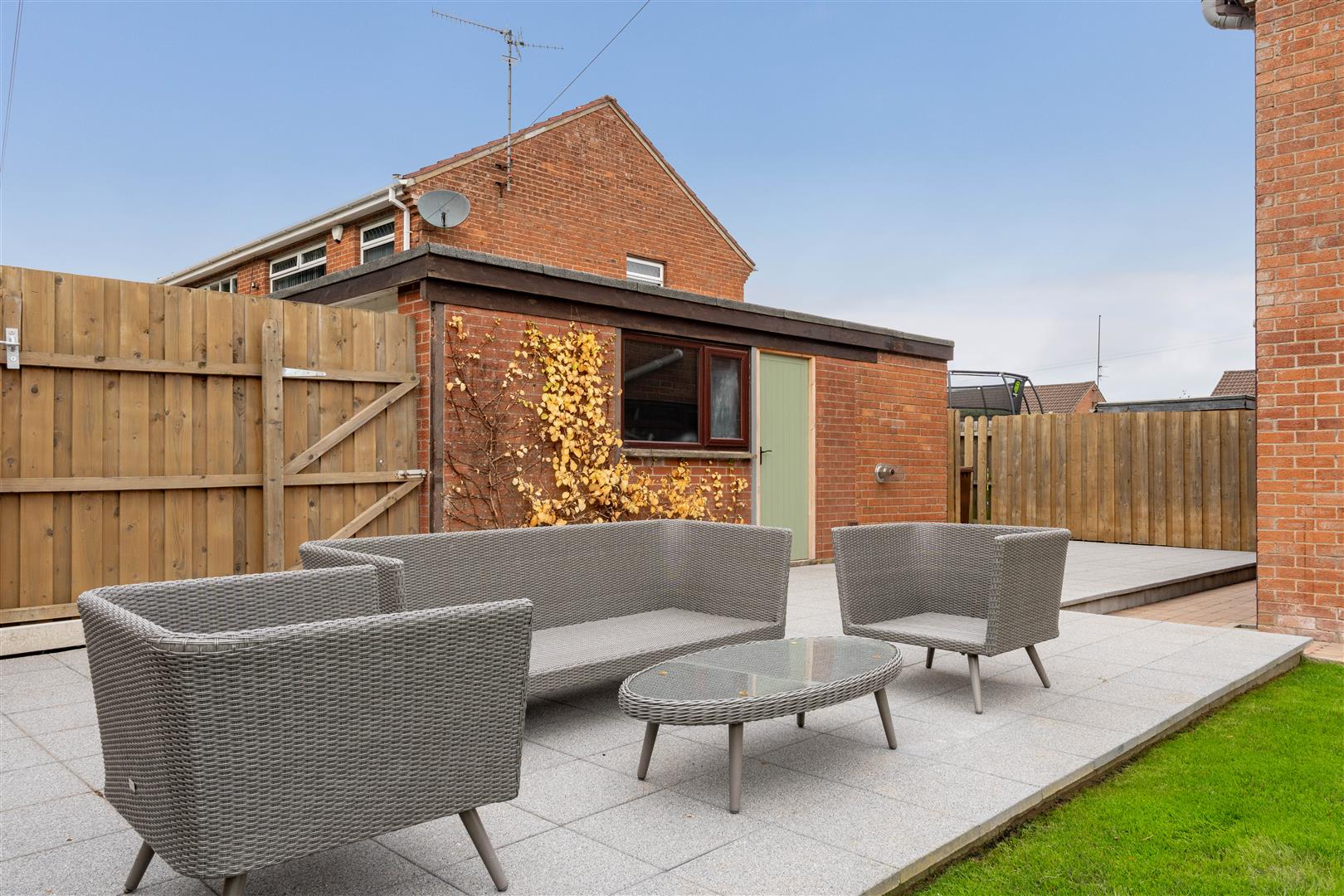 Externally, the property continues to impress. A private driveway provides off street parking and leads to a detached garage with additional storage. The beautifully landscaped gardens to the front and rear are laid in lawn, complimented by a large, paved patio area, perfect for outdoor entertaining or simply relaxing with family and friends.