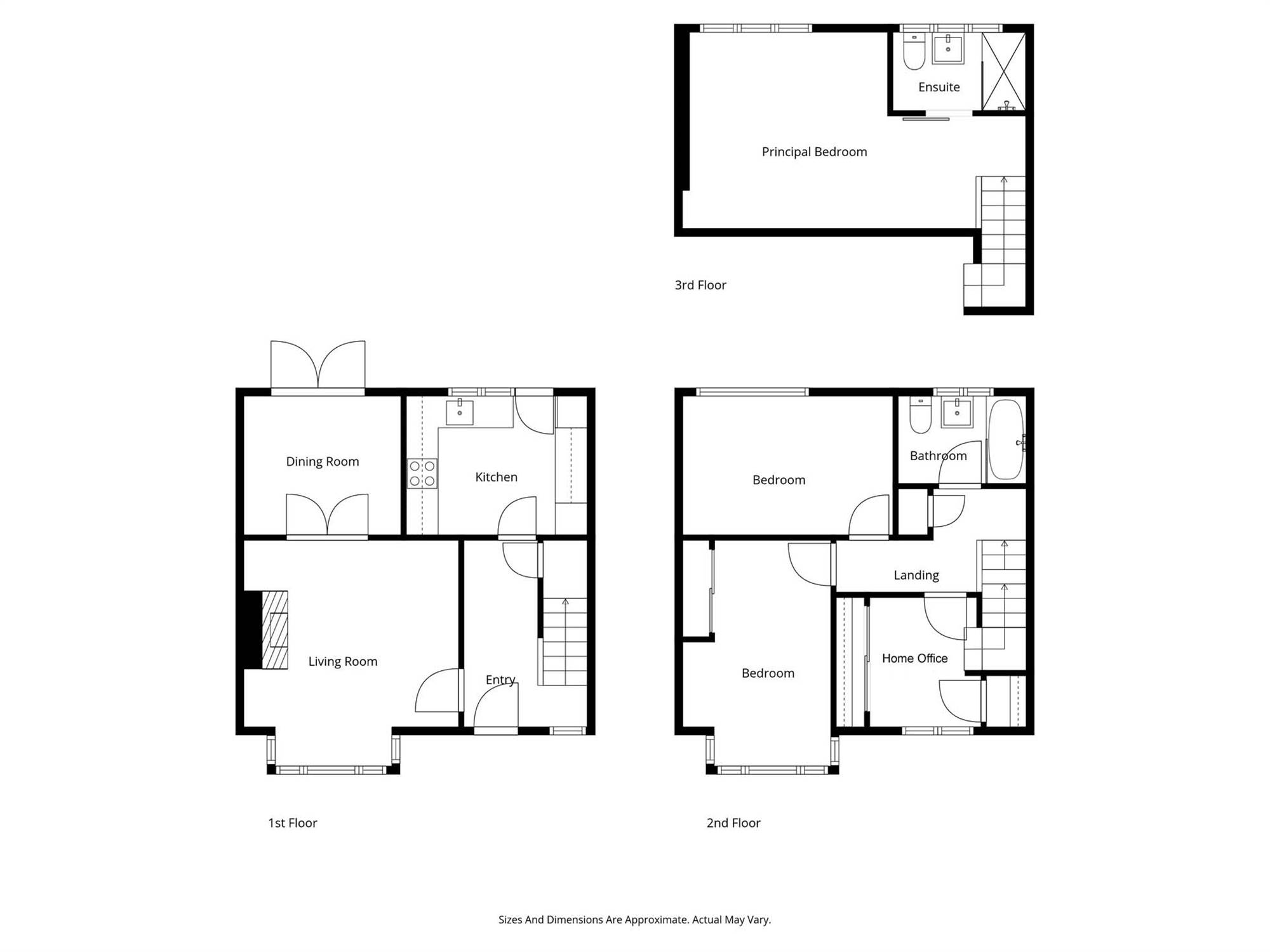 The spacious accommodation comprises; bright entrance hall, large lounge with feature fireplace leading to a good-sized dining room, modern kitchen with integrated appliances overlooking the landscaped rear garden. On the first floor there are two well-proportioned bedrooms including a home office/walk in wardrobe and a contemporary family bathroom. The impressive Principal bedroom is situated on the second floor benefiting from an ensuite shower room and ample floored under eave storage.
