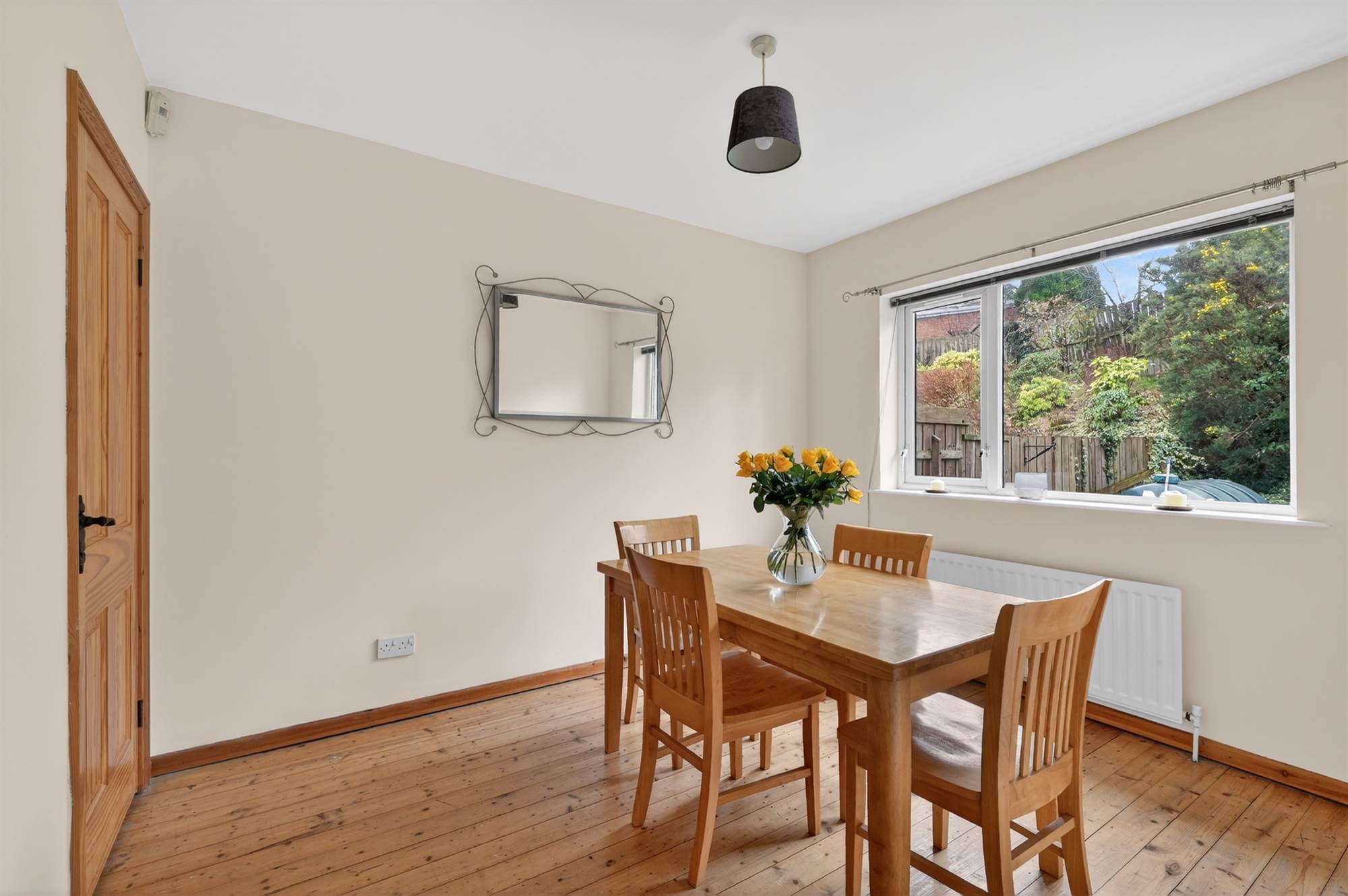Internally, the accommodation comprises a spacious front living room, enhanced by a bay window and open fire. To the rear, the kitchen is fitted with a range of high- and low-level units with integrated appliances and provides access to the enclosed rear garden. A separate dining room/ Bedroom 3 further benefits from a built-in storage cupboard.