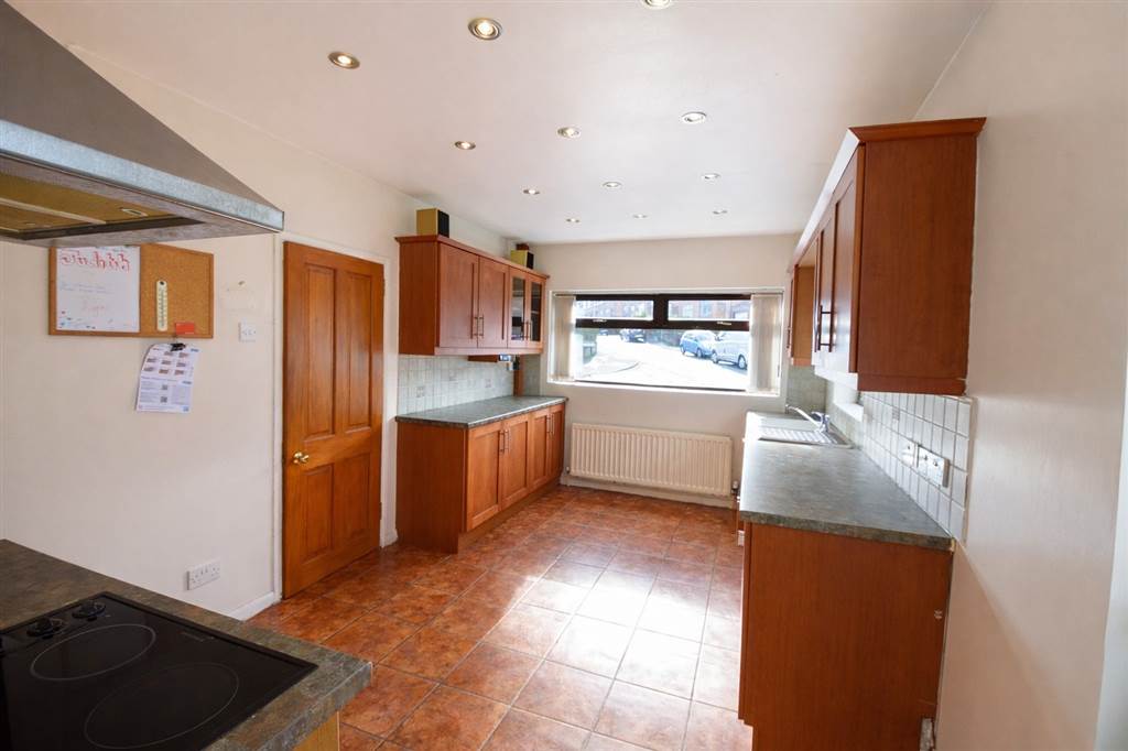 Range of fitted high and low level units under cupboard lioghting and counter tops with 1½ bowl single drainer sink unit with mixer taps. Ceramic hob with extractor canopy above and built in double oven and grill. Part tiled walls, ceramic toled floor and single panel radiator.