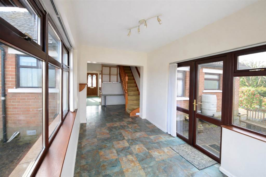 Glazed sliding doors to tiled inner porch with ½ glazed door leading to