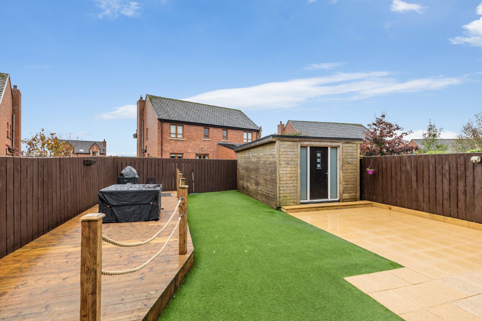 Patio, decking, artificial grass, driveway parking