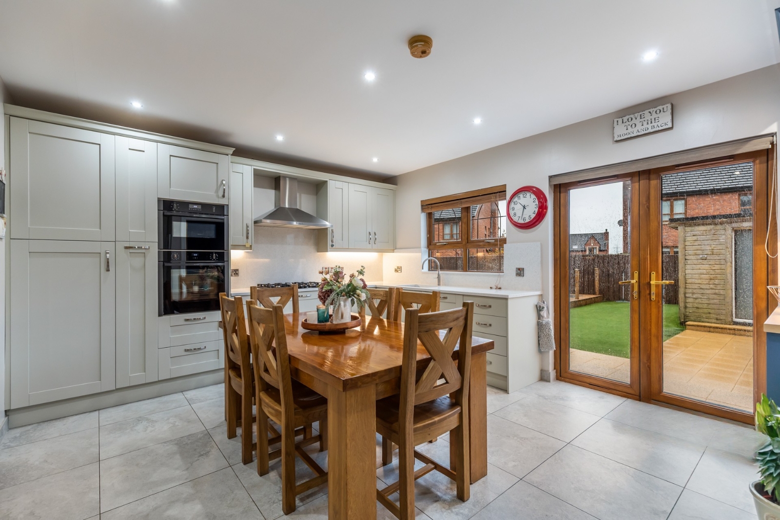 Range of high and low level units and quality appliances, inset sink, quartz worktops