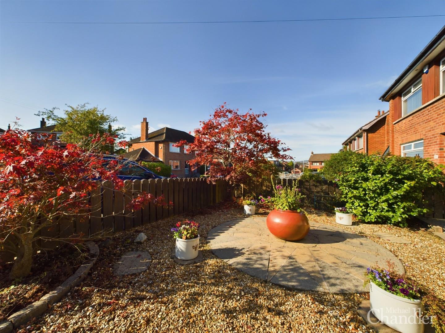 The exterior of the property is equally impressive, offering off-street parking with a low-maintenance front garden. At the rear, the garden is a peaceful haven with a spacious patio area, raised flowerbeds, and mature shrubs, providing the perfect spot for outdoor entertaining or simply relaxing in the sun.