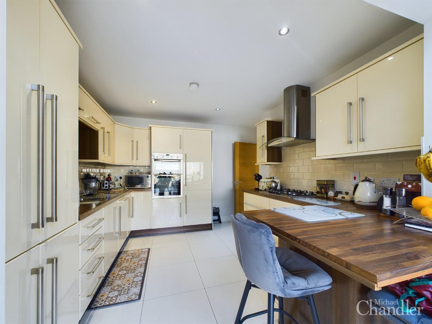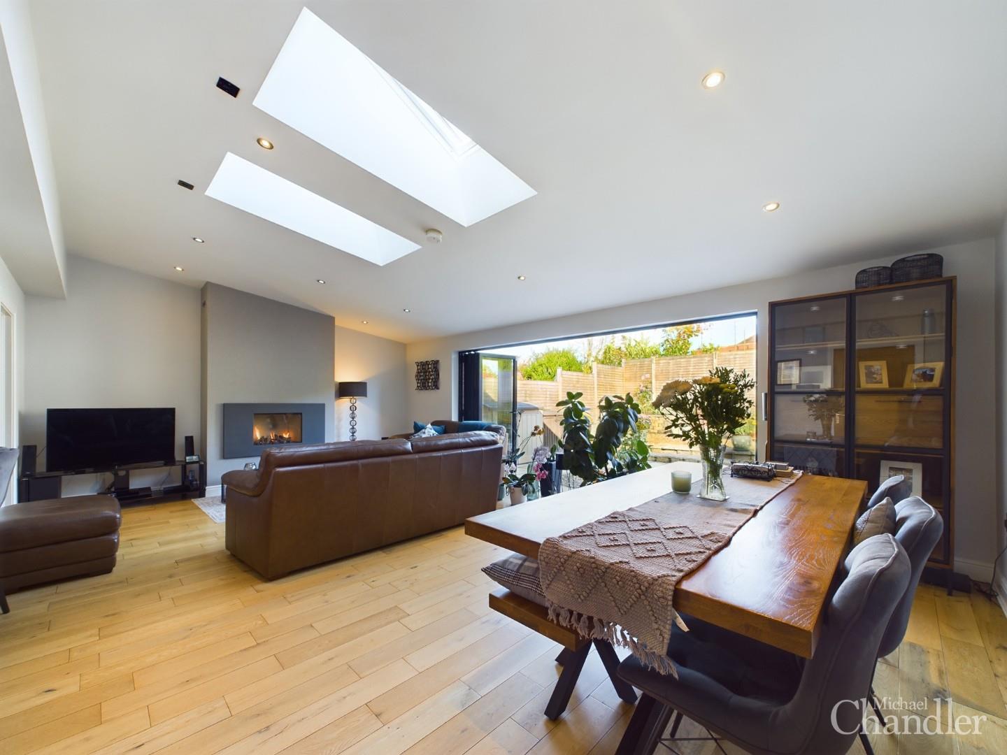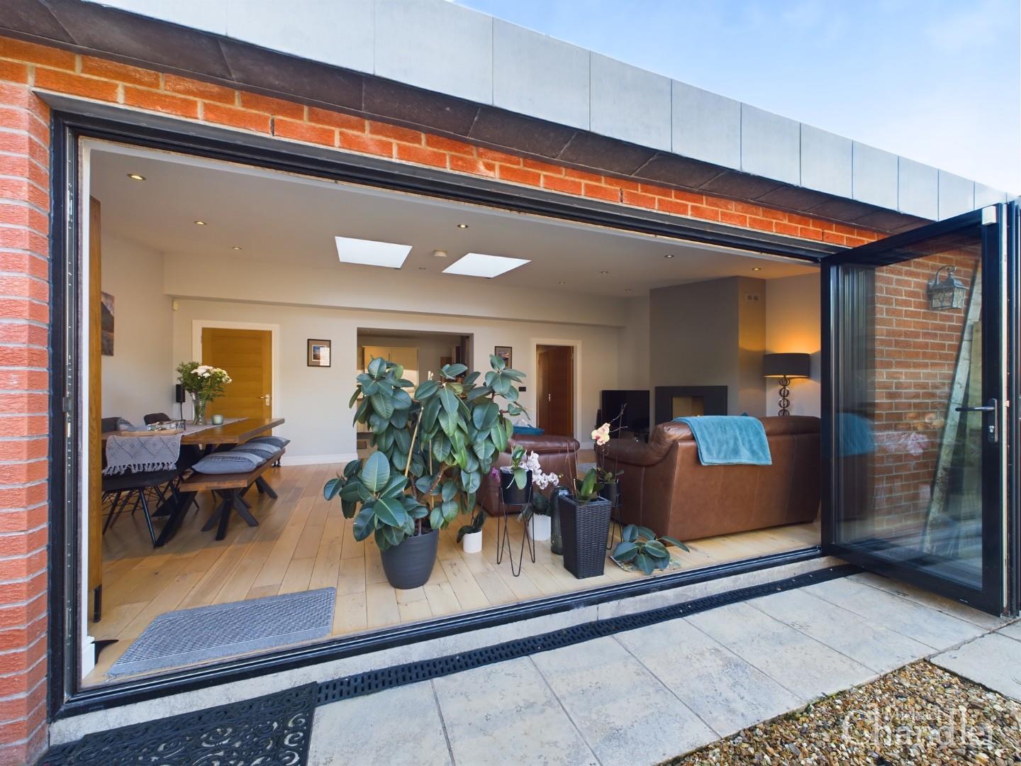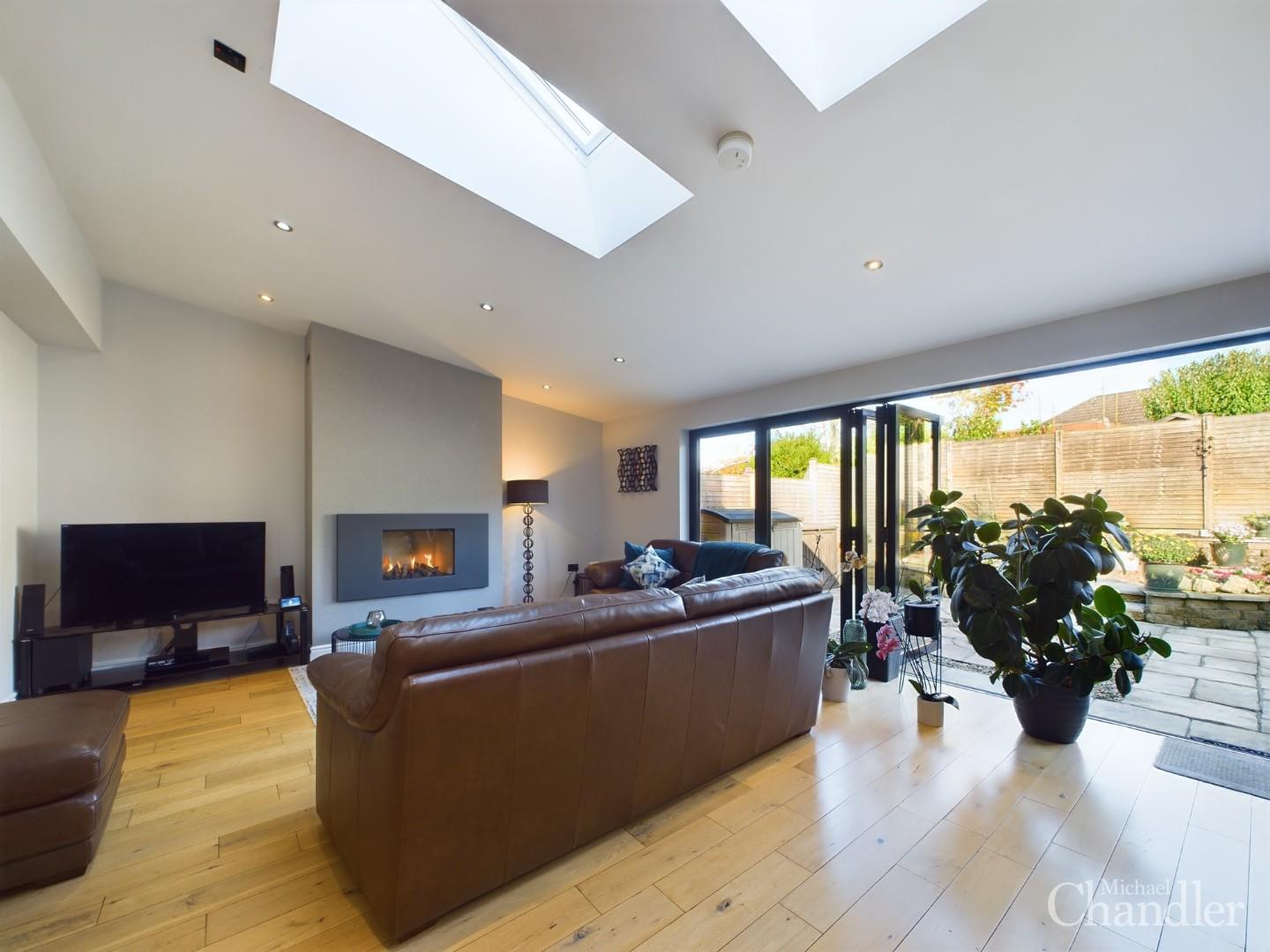 As you step inside, the ground floor greets you with a welcoming entrance hall, complete with solid wood flooring and additional storage. The family room is both cosy and elegant, featuring a striking gas fire and more solid wood flooring, which adds a touch of warmth and sophistication. One of the highlights of this home is the open-plan kitchen, living, and dining area, designed with modern family life in mind. The kitchen boasts a range of high-quality units and integrated appliances, making it a dream for cooking enthusiasts. The dining and lounge area is bright and airy, thanks to the impressive bi-fold doors that open up to the garden. It also features underfloor heating, two remote-controlled Velux windows with automatic rain-sensing technology, and a modern gas fire. The integrated surround sound system further enhances the space, making it ideal for movie nights or entertaining guests.