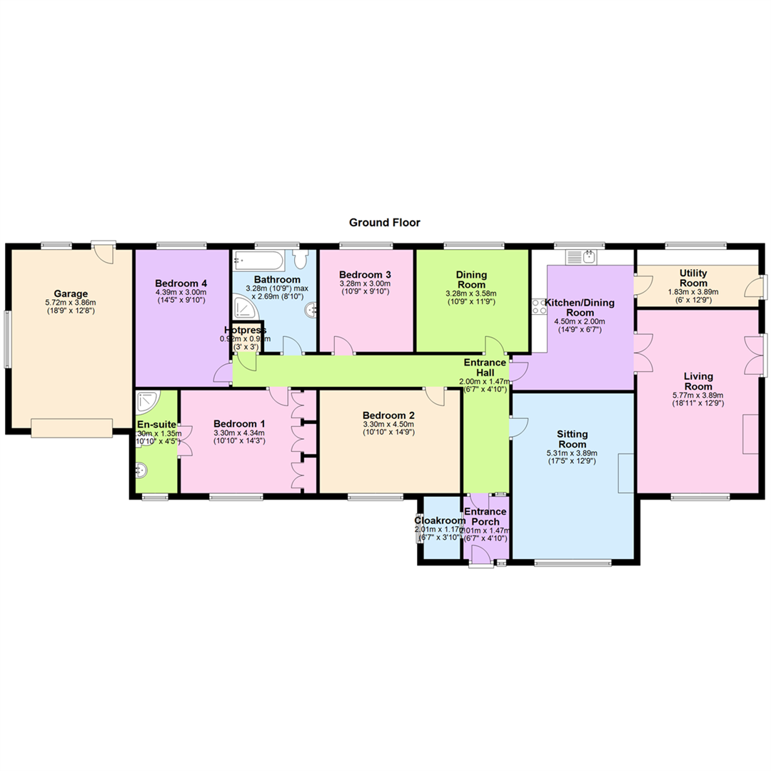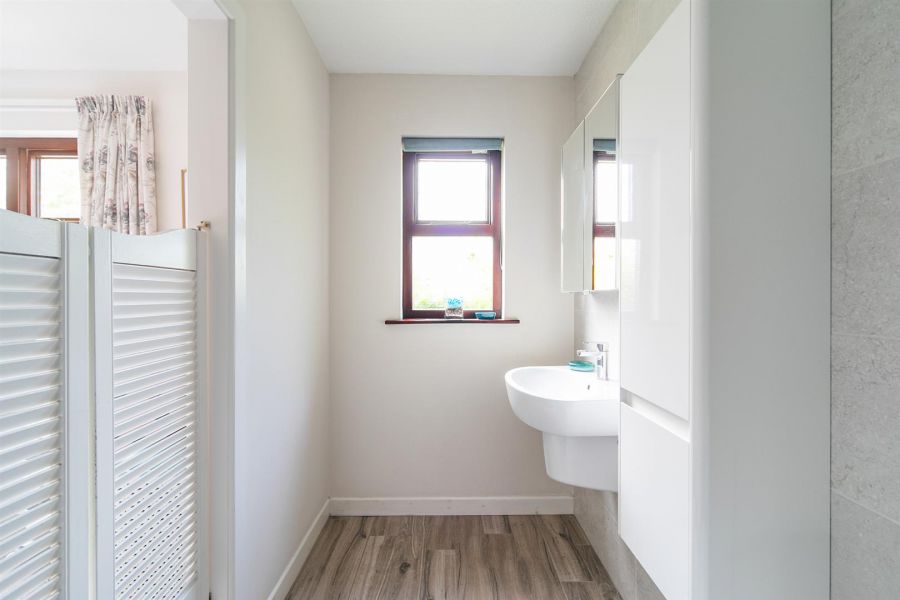 The property comprises entrance porch leading to a spacious entrance hall, large living room with multi fuel stove, kitchen with dining area and utility room. There is a further sitting room with open fireplace with marble hearth, dining room and four good sized bedrooms, master with ensuite and a family bathroom.