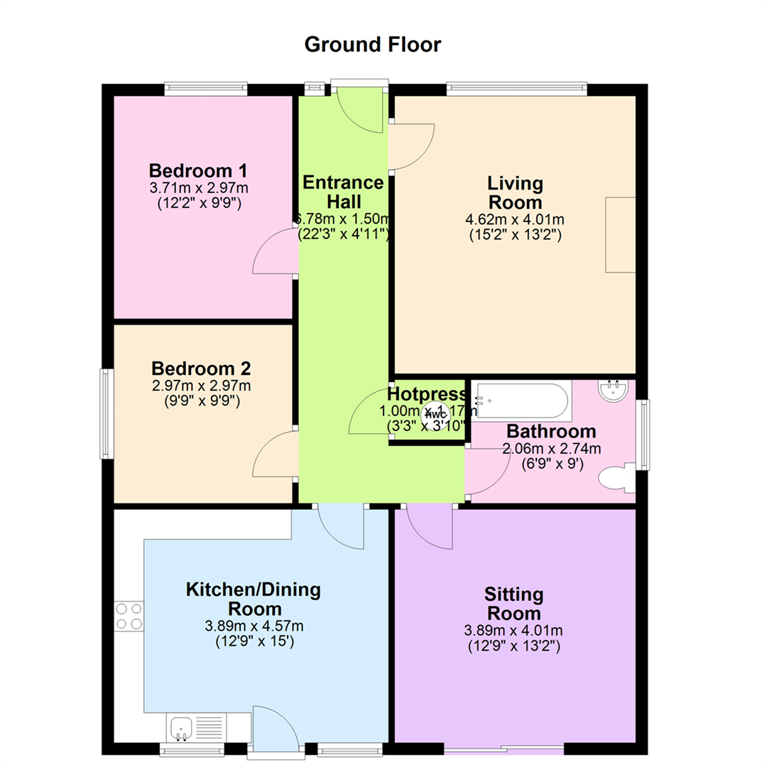 Sitting Room 12'9" X 13'2" (3.89m X 4.01m)
