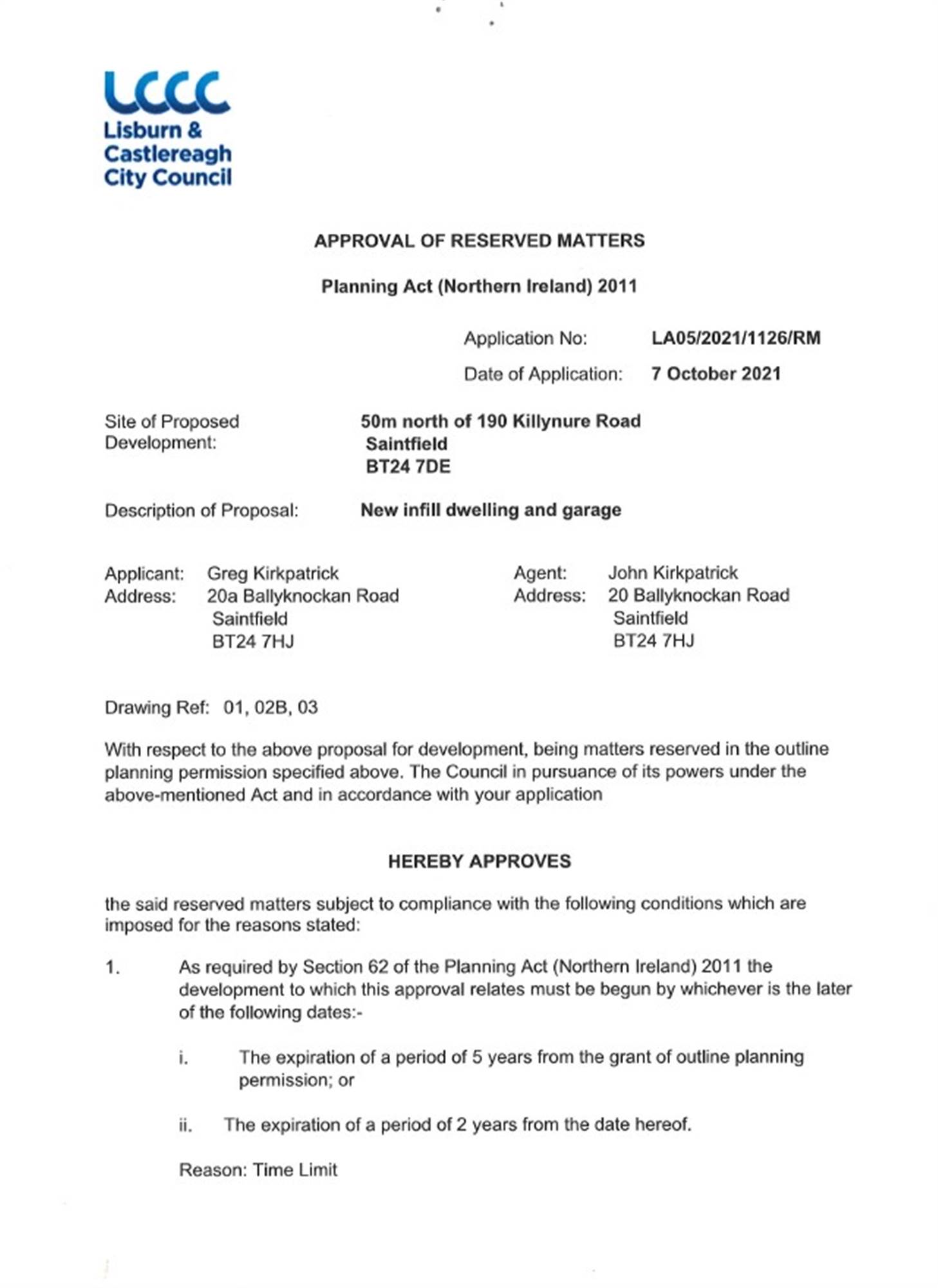 Building Site 50M North Of 190 Killynure Road, Saintfield, BT24 7DE