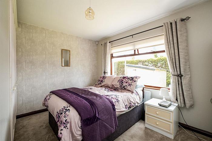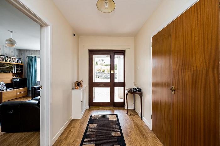 Garden to front laid out in lawns and well stocked flowerbeds with feature flagged circular path illuminated with standard 3 point light. Spacious side gardens laid out in lawns and flower beds, partially enclosed with mature Ash and Scots Pine trees providing a pleasing setting to the residence.