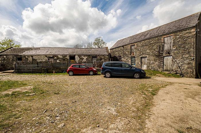 Gravelled land to cattle grid, leading to bitmac drive to front, side and rear, providing ample parking and farm yard.