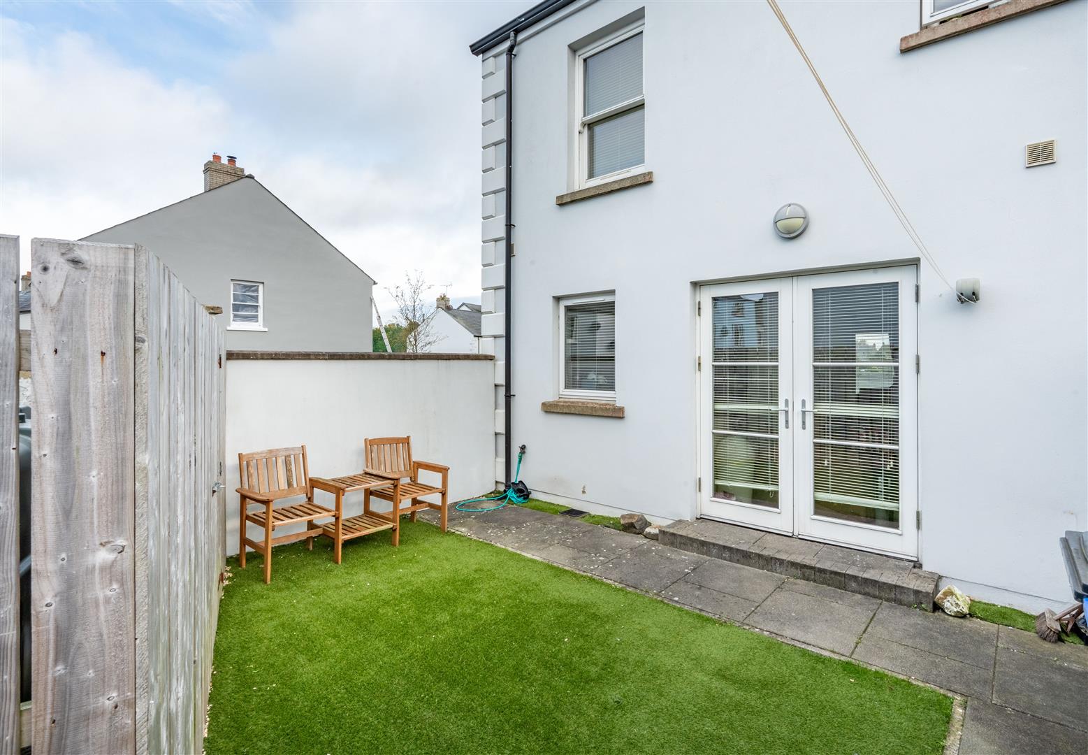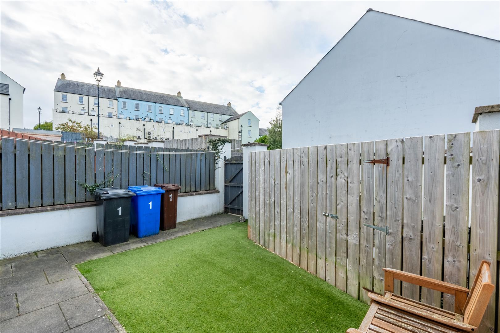 Enclosed rear garden laid out in artificial grass and flagged patio area; enclosed area for oil storage tank and oil fired boiler; outside light and water tap.