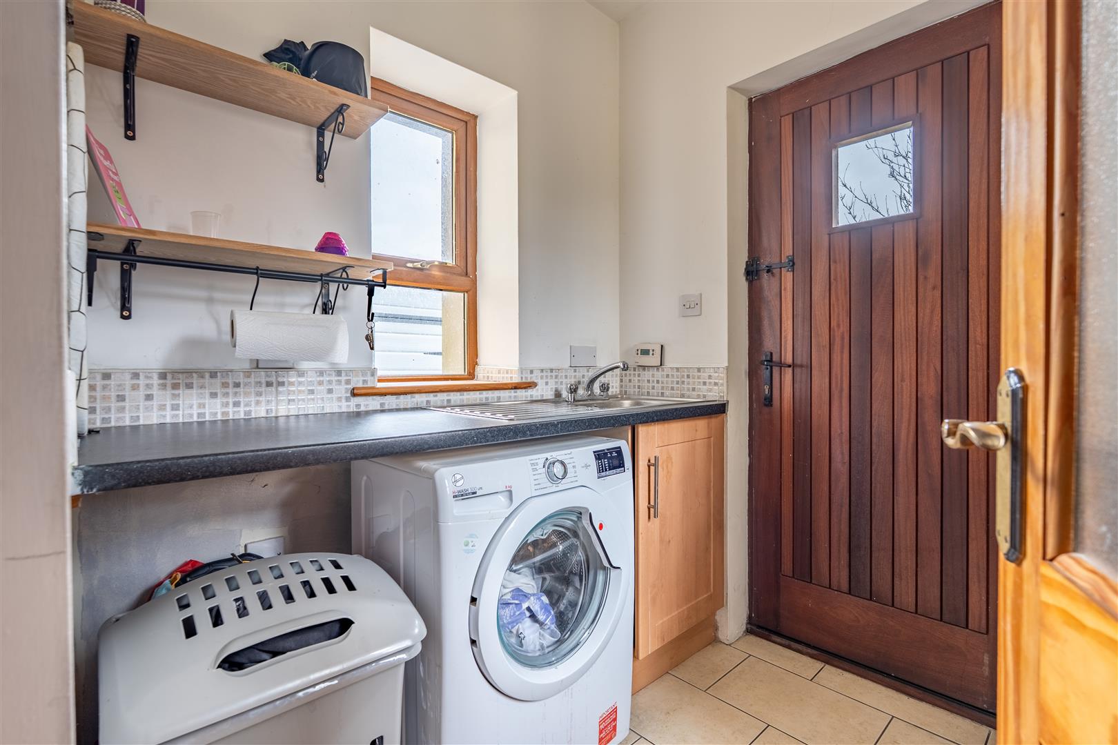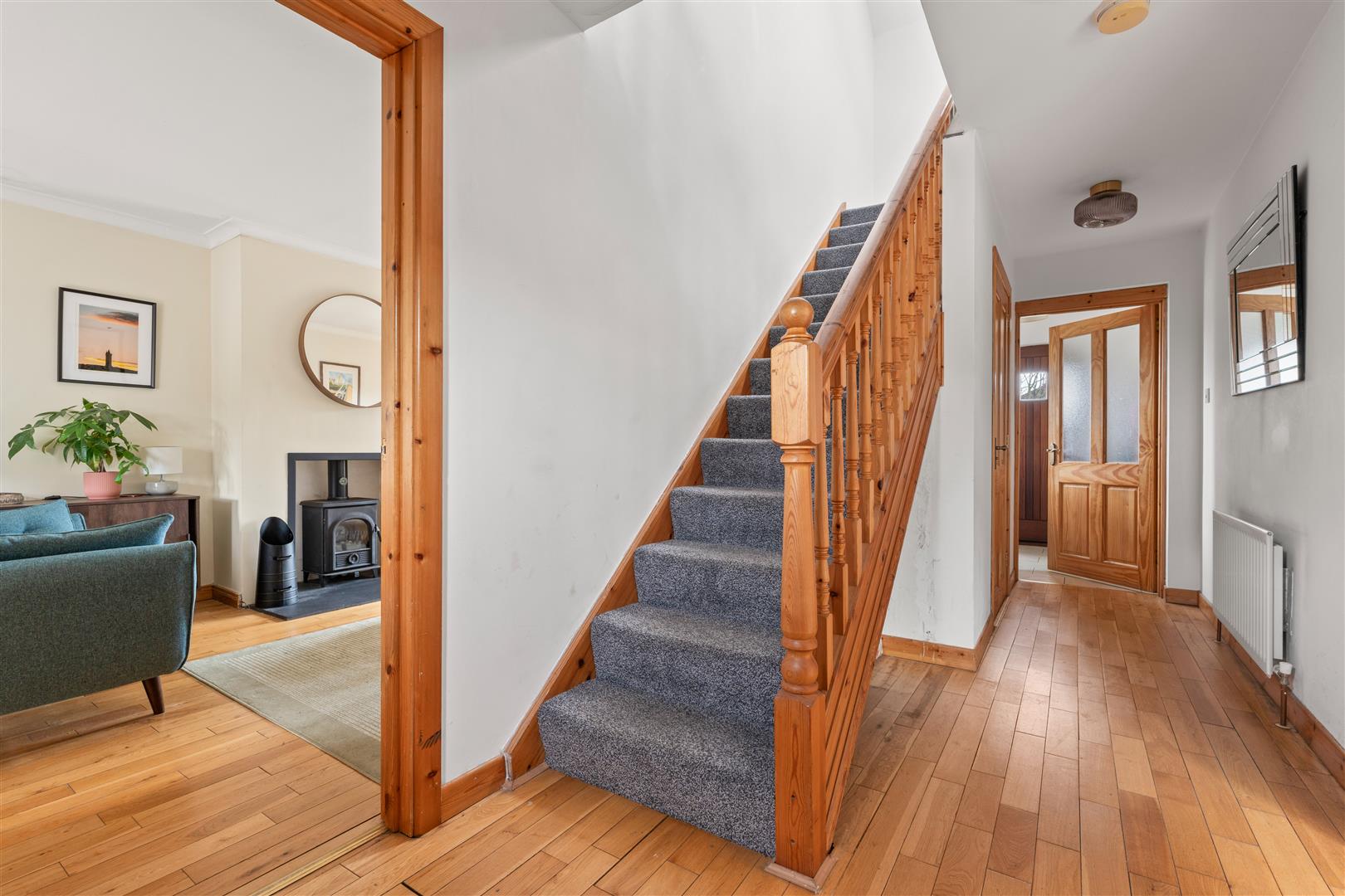 The lounge features a multi-fuel stove, creating a cosy focal point, and opens into the dining room which is flooded with natural light - perfect for both everyday living and entertaining. The kitchen provides excellent workspace, with ample room for informal dining or a snug-style seating area. A separate utility room and downstairs WC completes the ground floor.