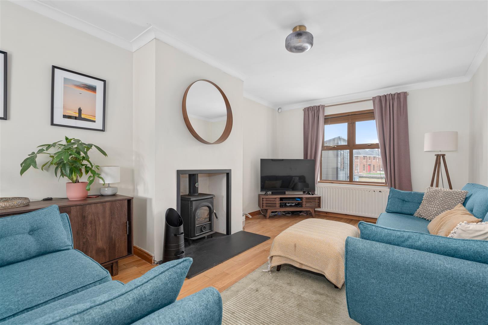 Enclosed cast iron multi fuel on slate hearth; solid wood floor; TV aerial and telephone connection point; corniced ceiling; open through to:-