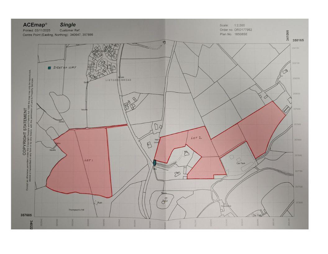 The lands subdivided into two lots including lot 1 extending to circa 9 acres are currently sown down to grass and are thought suitable for grazing, cutting and / or arable purposes. A short lane leads from the County Road to the lands contained in lot 1 which can be widened by agreement with the vendor.