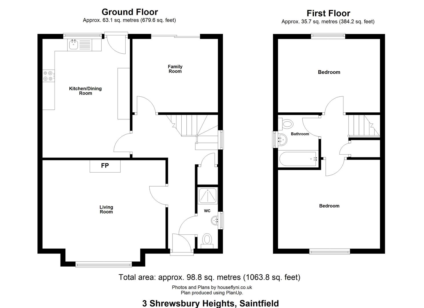 The property comprises a bright and spacious layout with an adaptable layout. The ground floor boasts a generous lounge with open fire, kitchen with Neff integrated appliances, family room opening out to the rear garden, which could be used as a third bedroom and a shower room. Two double bedrooms, one with built in wardrobes, and a bathroom are found on the first floor.