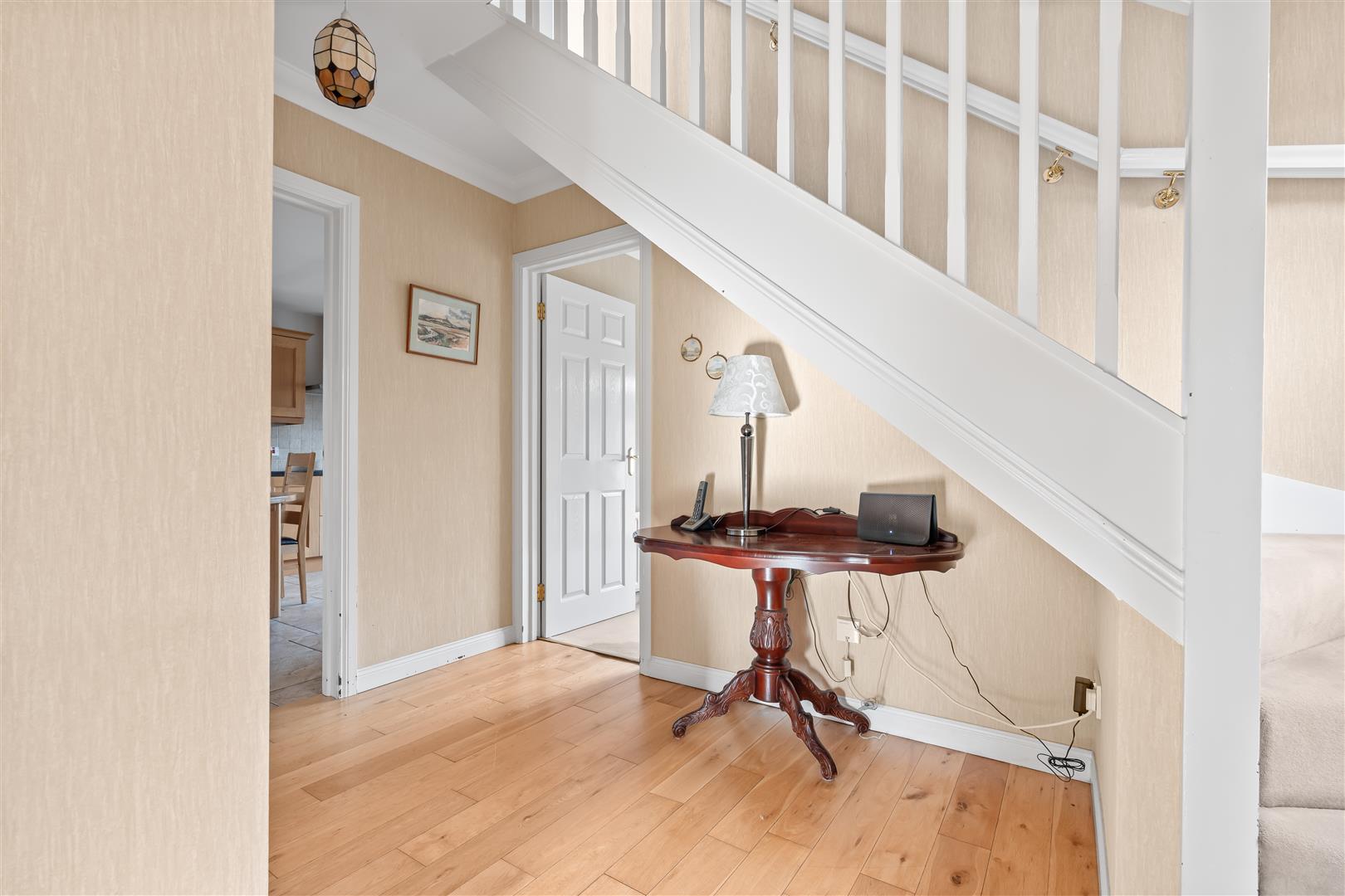 Glazed Upvc entrance door; solid oak wooden floor; storage cupboard; telephone connection point; corniced ceiling.