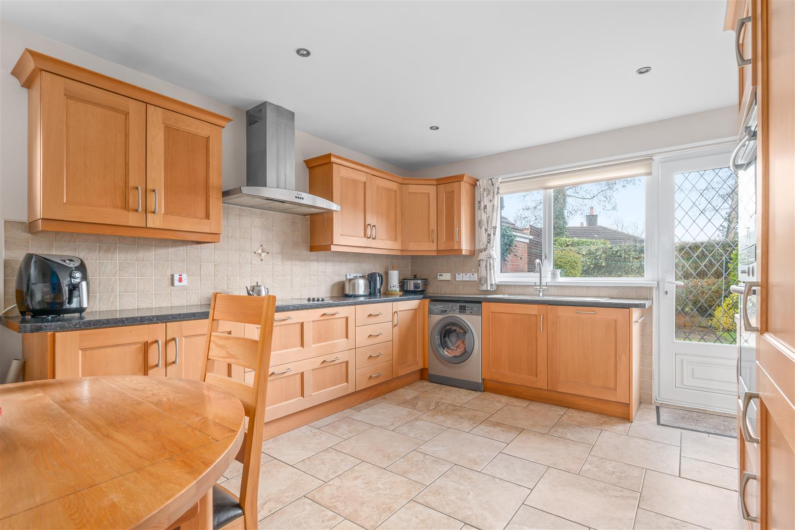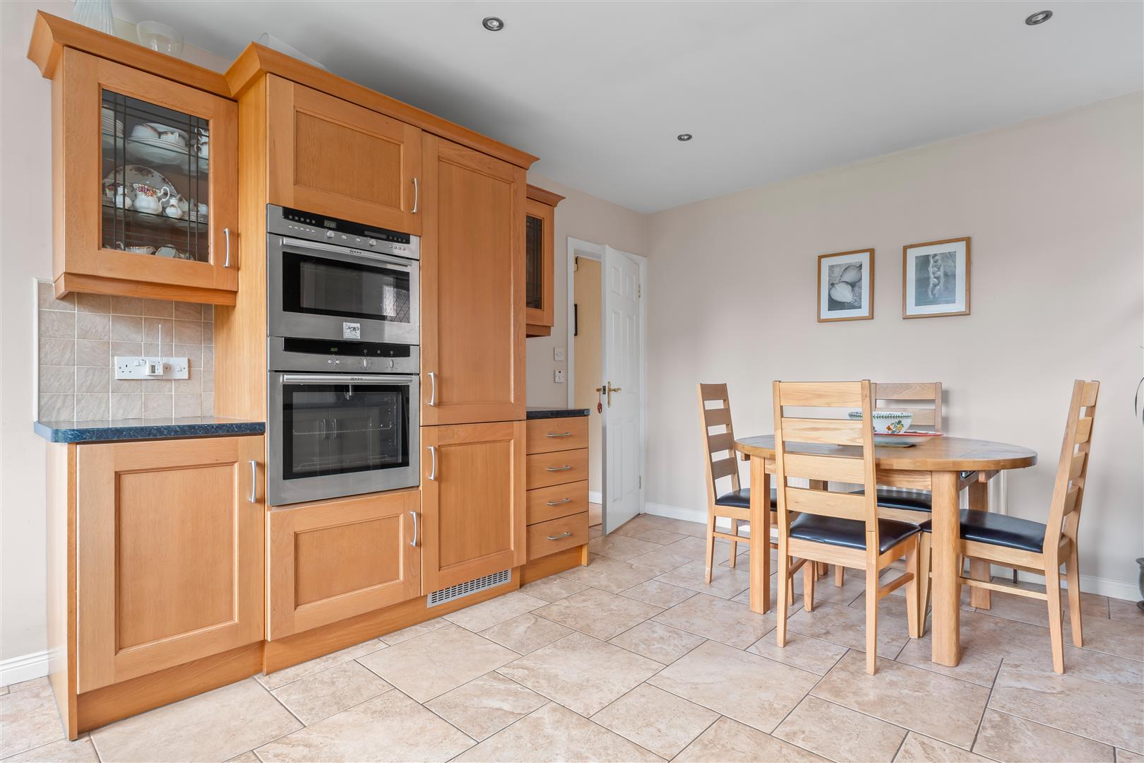 Excellent range of high and low level cupboards and drawers with feature glazed display cupboards; formica worktop incorporating 1½ tub stainless steel sink unit with swan neck mixer taps; Neff double electric ovens; Neff 4 ring ceramic hob with Neff stainless steel extractor unit and light over; Neff integrated dishwasher; space and plumbing for washing machine; ceramic tiled floor; part tiled walls; LED spotlighting; glazed uPVC door to the rear garden.