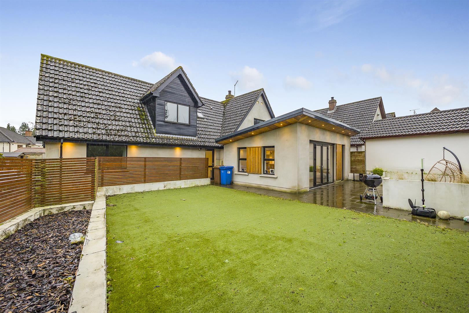 Fully Enclosed rear garden with Both paved and Artificial Grass Area Perfect for Outdoor Entertaining, Young Children and Pats Alike.
